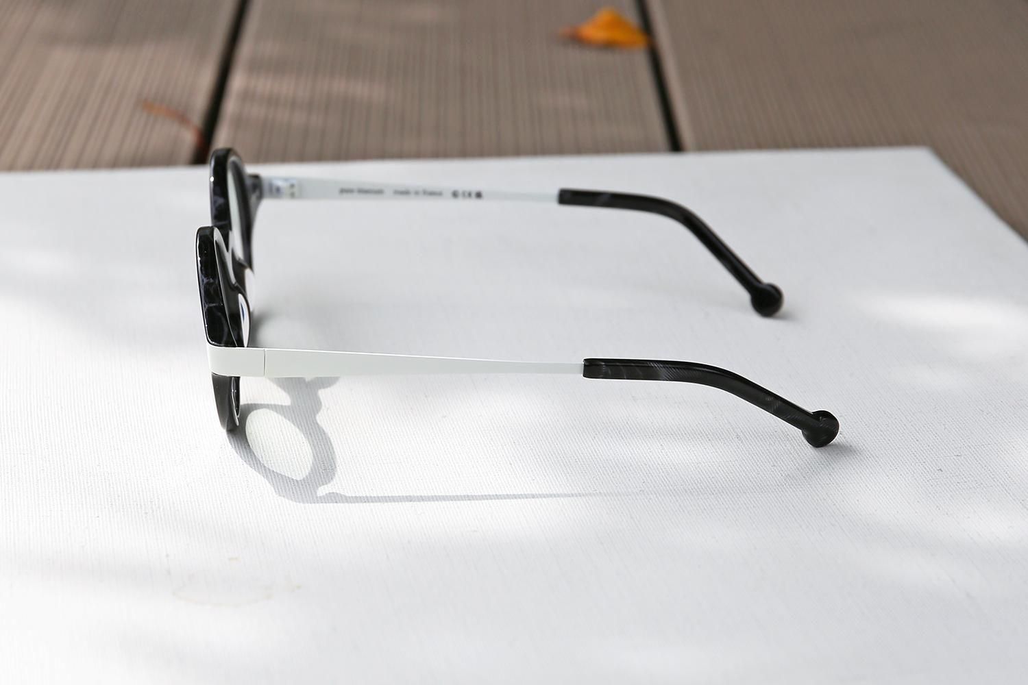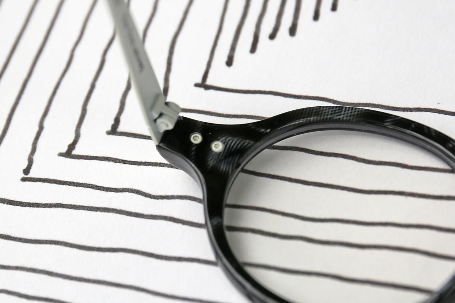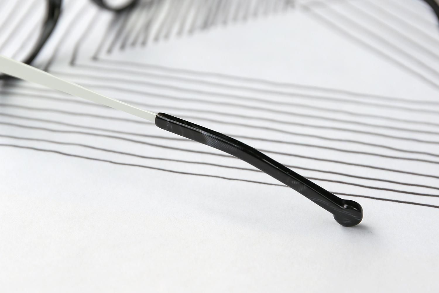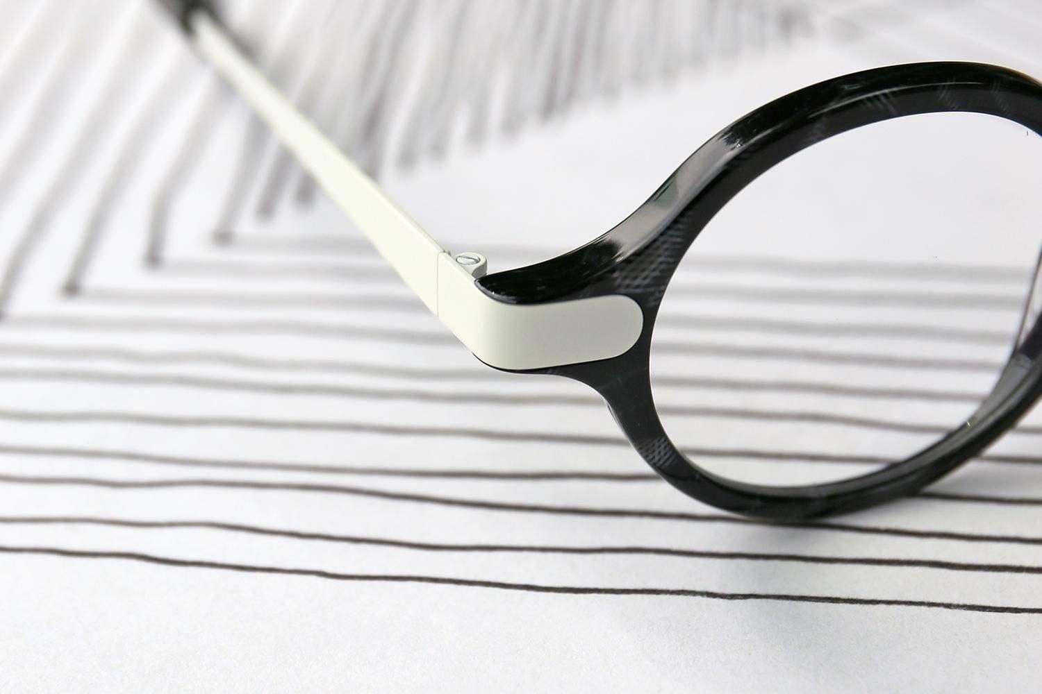 アセテート(プラスチック)の深みのある色合いや質感を、チタンの軽快で精密な造りが支え合う、異なる素材がお互いの長所を高め合うことで、デザイン性と快適性が見事に融け合っています。