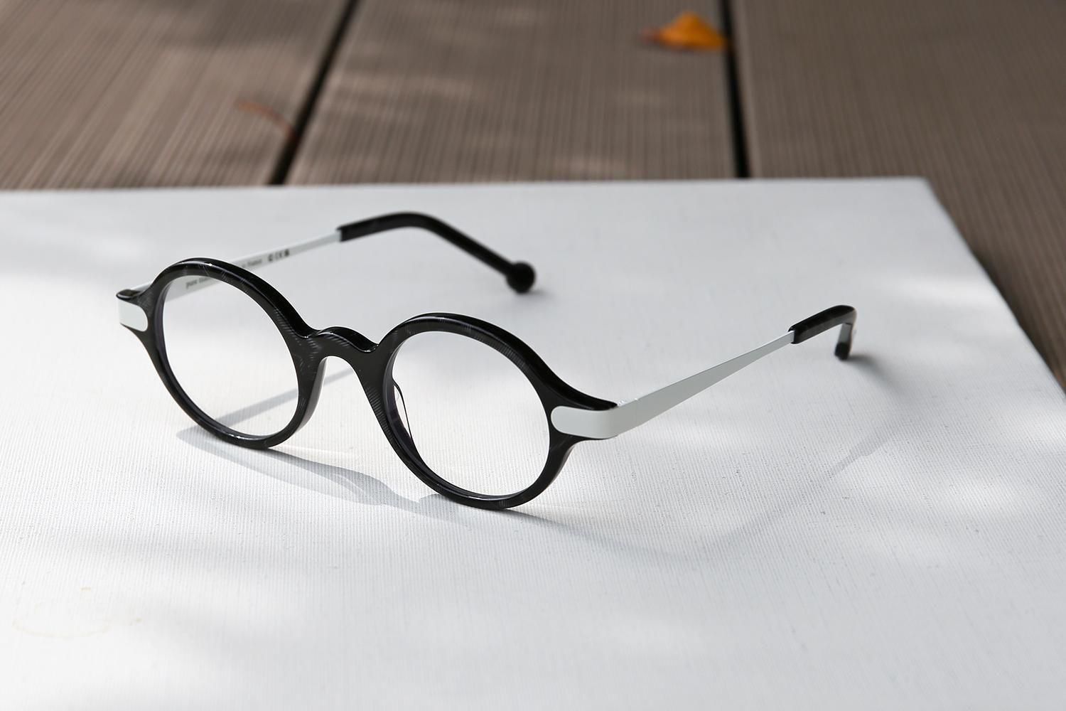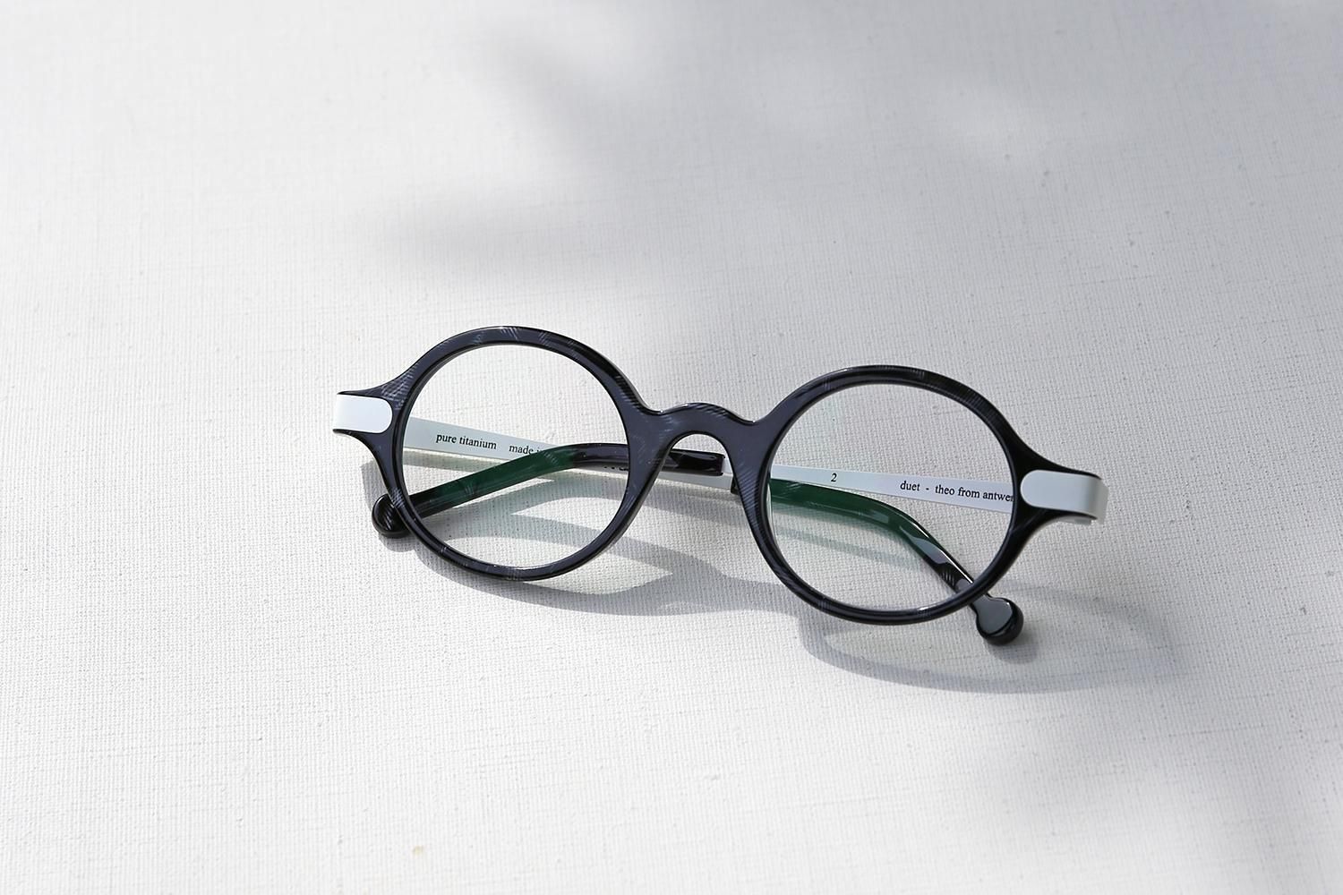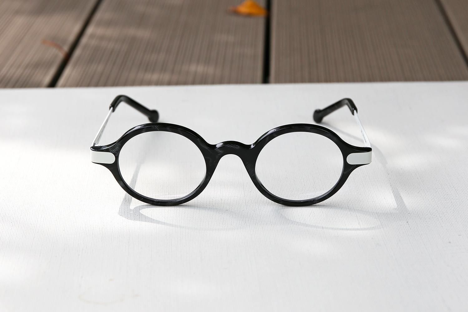 シェイプは、角を丸く削ぎ落としたまろやかな曲線が特徴的な優美なラウンドシェイプです。掛け手の表情に優しさと知性を灯し、見る人に親しみやすい印象を与えます。theoらしいユニークなエッセンスは保ちつつも、日常のコーディネートに違和感なく溶け込む融和性を持っています。