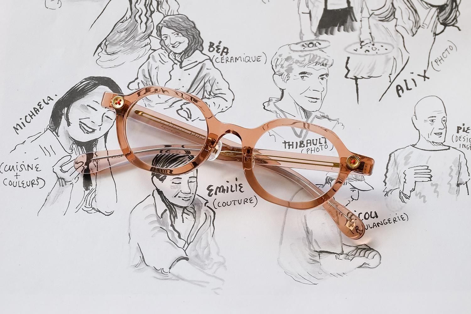 “Filton”のファーストコレクション〈Aiguille=針〉をベースに、“kikiki optique”の象徴でもある「ボタン」を合わせた一本。