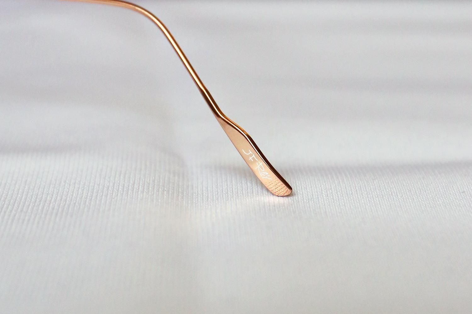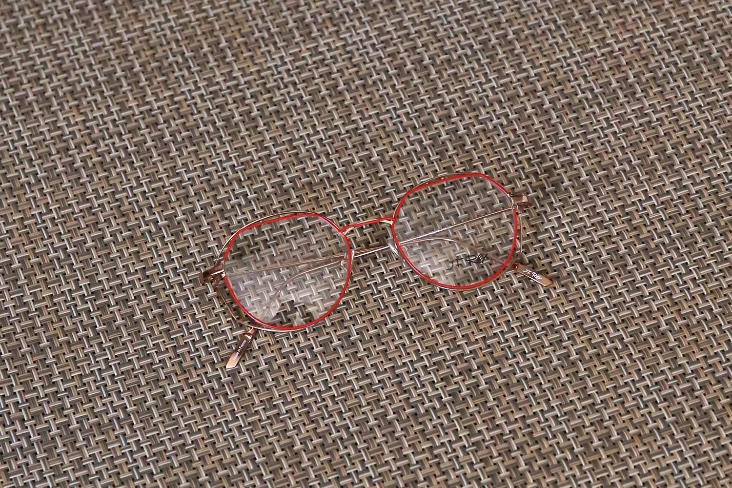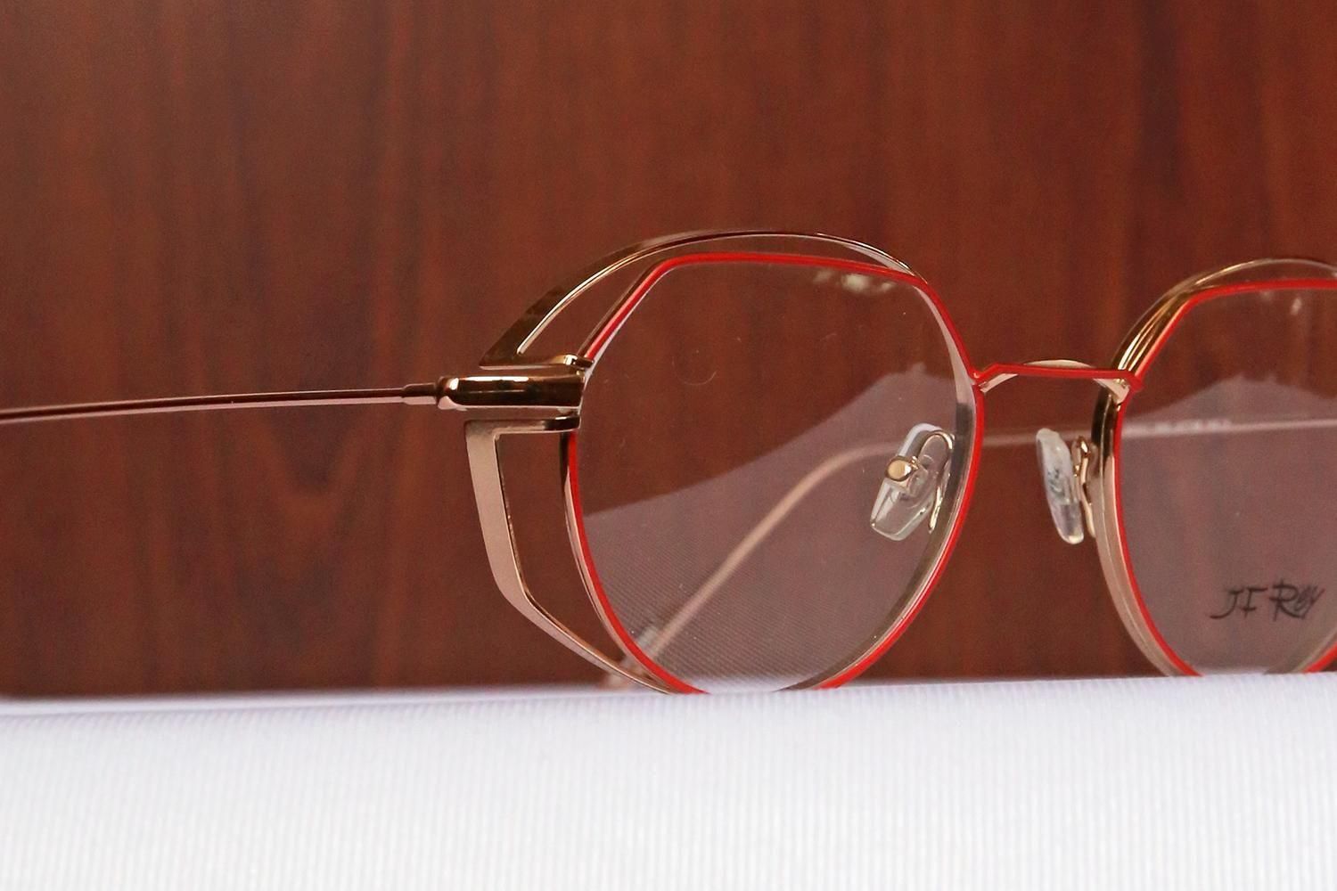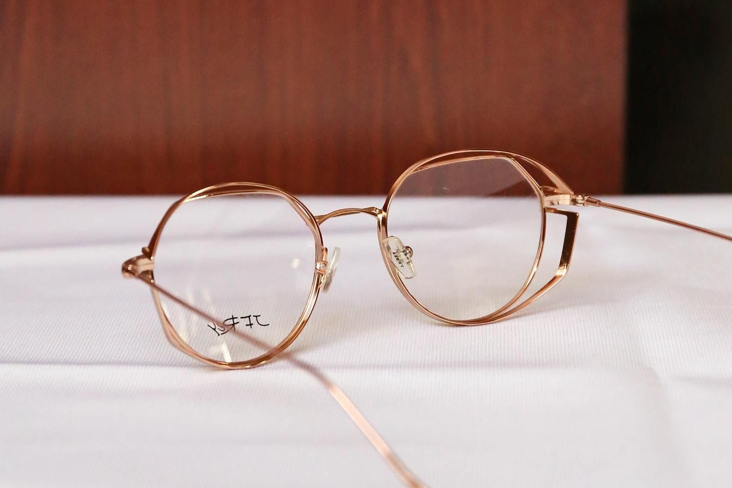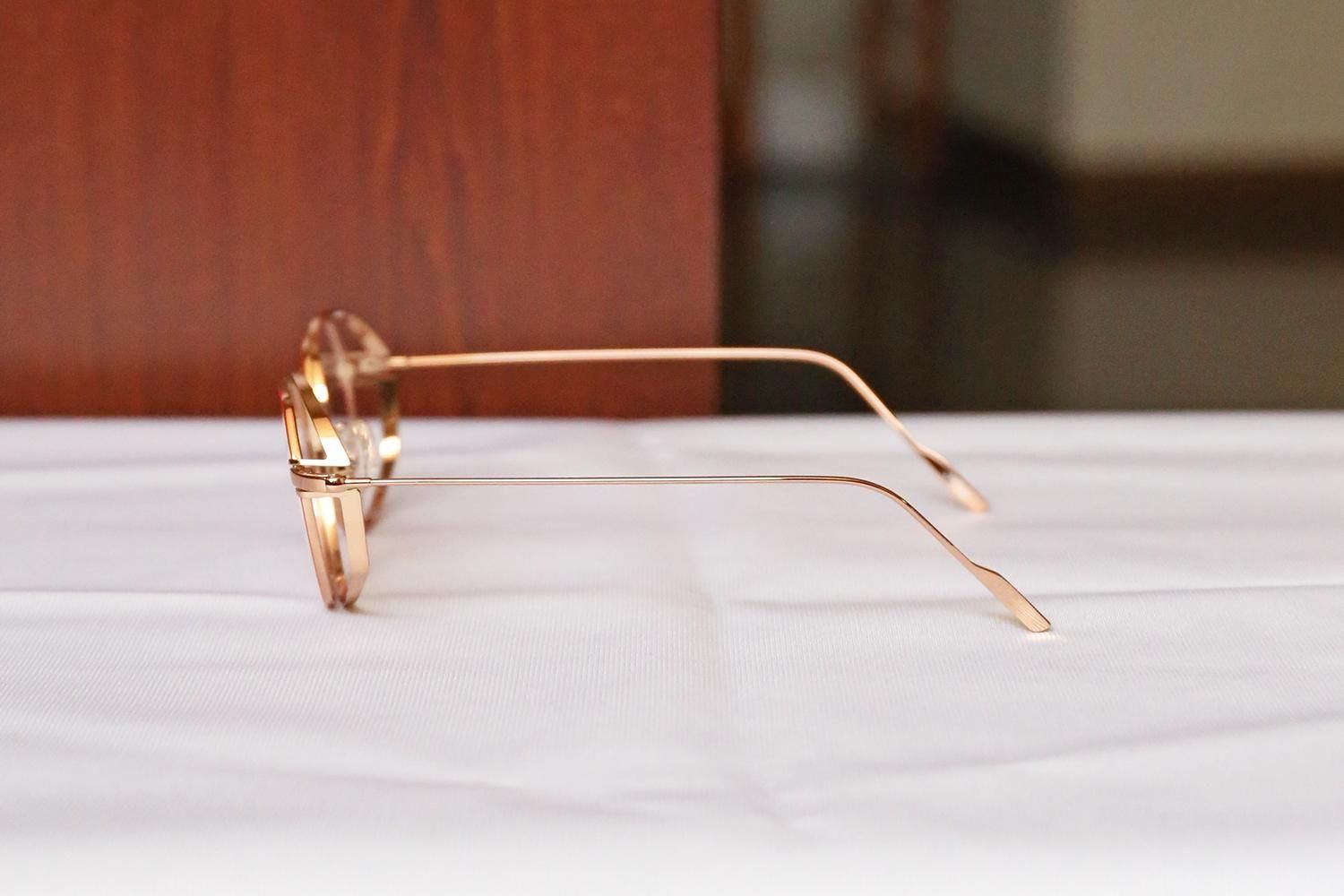 さらに、フロントリムには、赤やカーキなどの鮮やかな七宝が丁寧に施されています。これにより、ソリッドなメタルフレームに温かみのある彩りと柔らかなテクスチャーが加わり、掛ける人の個性を引き立てる魅力的な「表情」を作り出しています。
