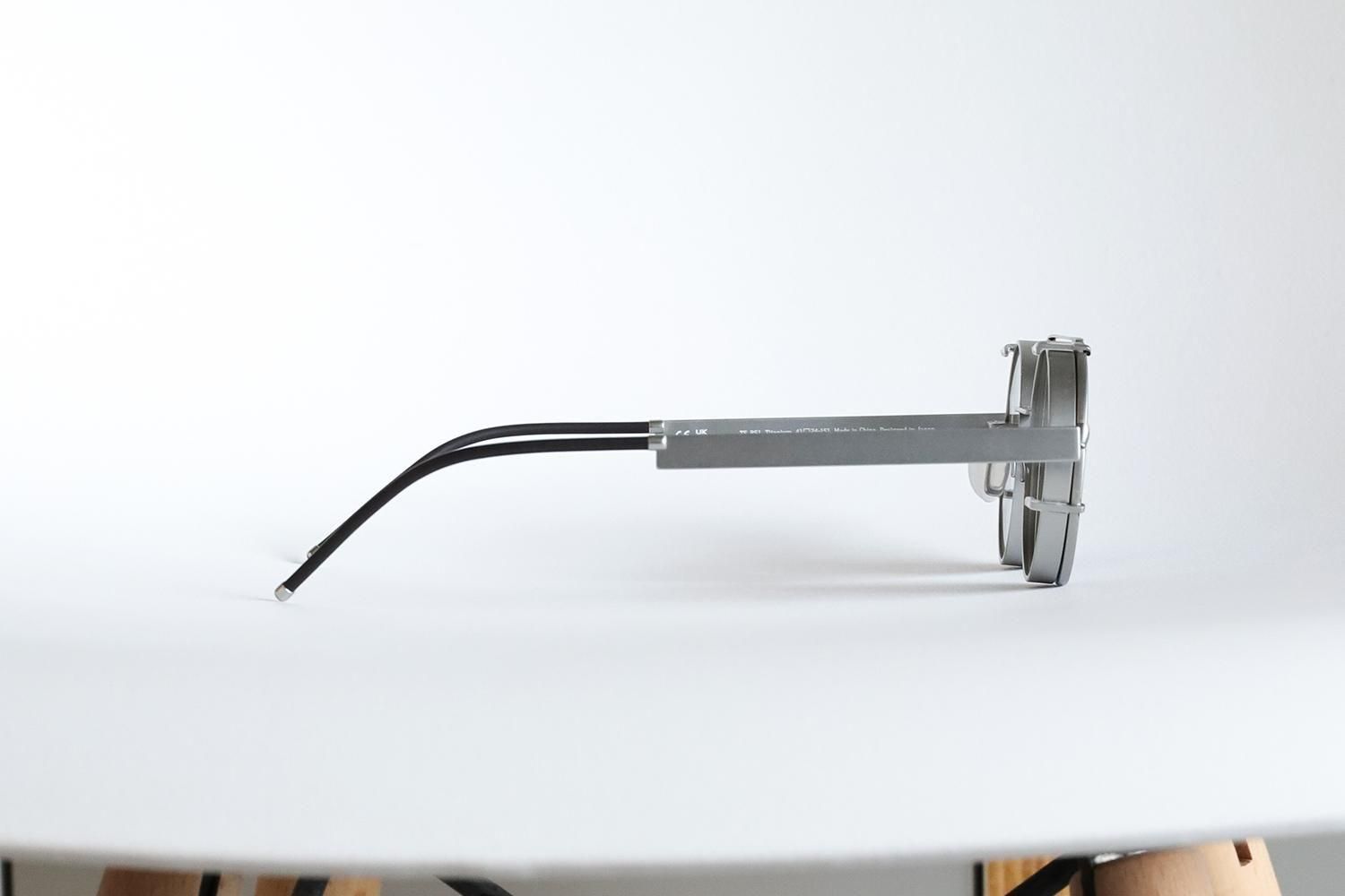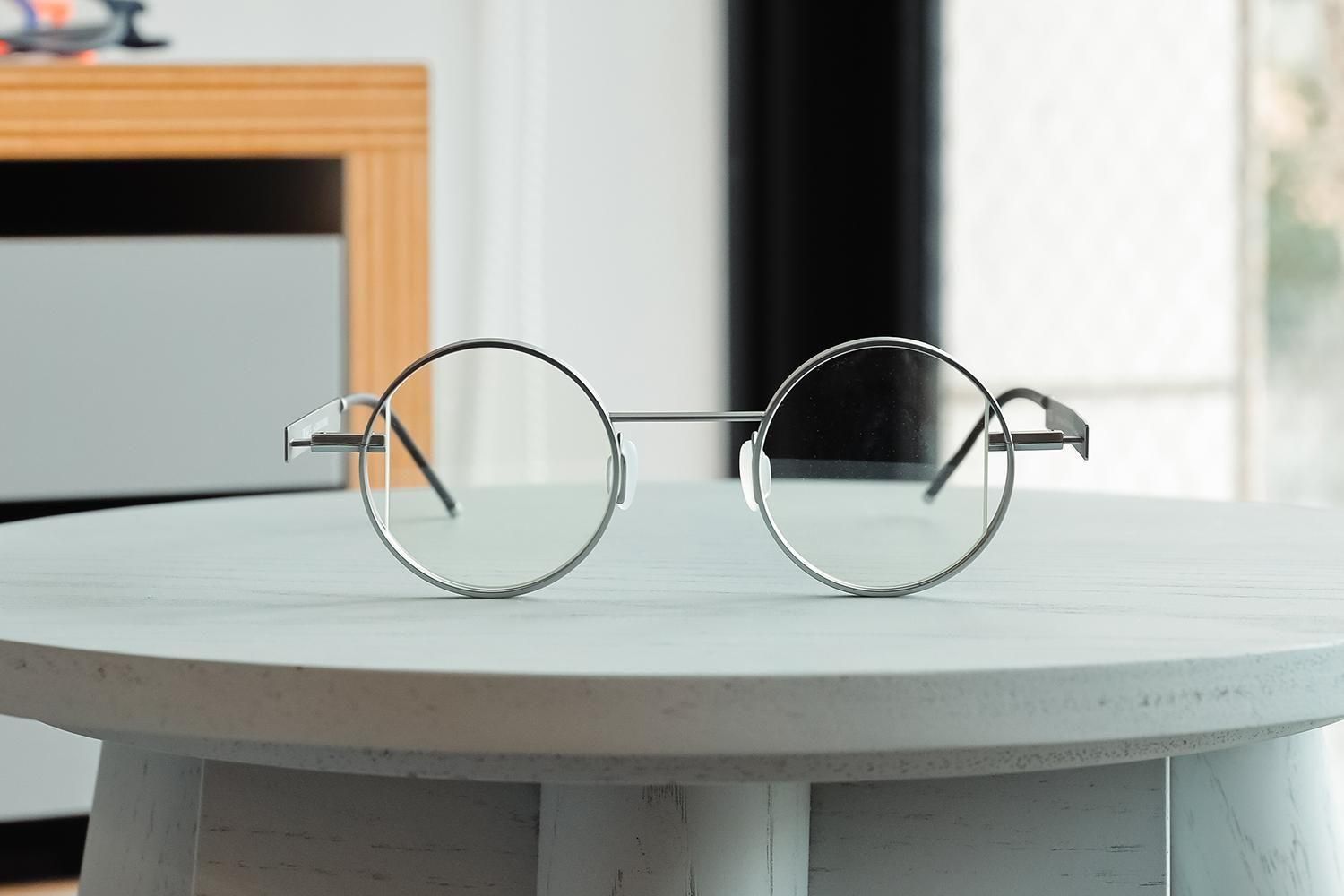 フレーム本体は従来のRound同様、レンズの端がスパッと切り落とされたような“エッジの効いた”デザイン。真正面から見るとスッキリ、横から見ると無骨。線と面が交差する、まさに「二面性=TWOFACE」を体現した構造です。