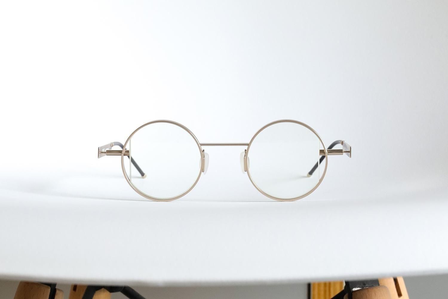 フレーム本体は従来のRound同様、レンズの端がスパッと切り落とされたような“エッジの効いた”デザイン。真正面から見るとスッキリ、横から見ると無骨。線と面が交差する、まさに「二面性=TWOFACE」を体現した構造です。