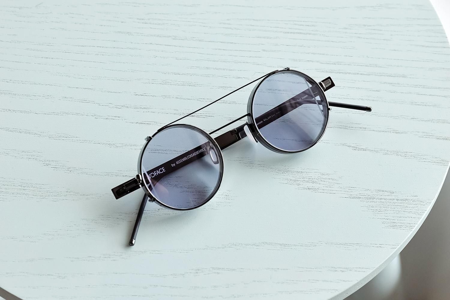フレーム本体は従来のRound同様、レンズの端がスパッと切り落とされたような“エッジの効いた”デザイン。真正面から見るとスッキリ、横から見ると無骨。線と面が交差する、まさに「二面性=TWOFACE」を体現した構造です。