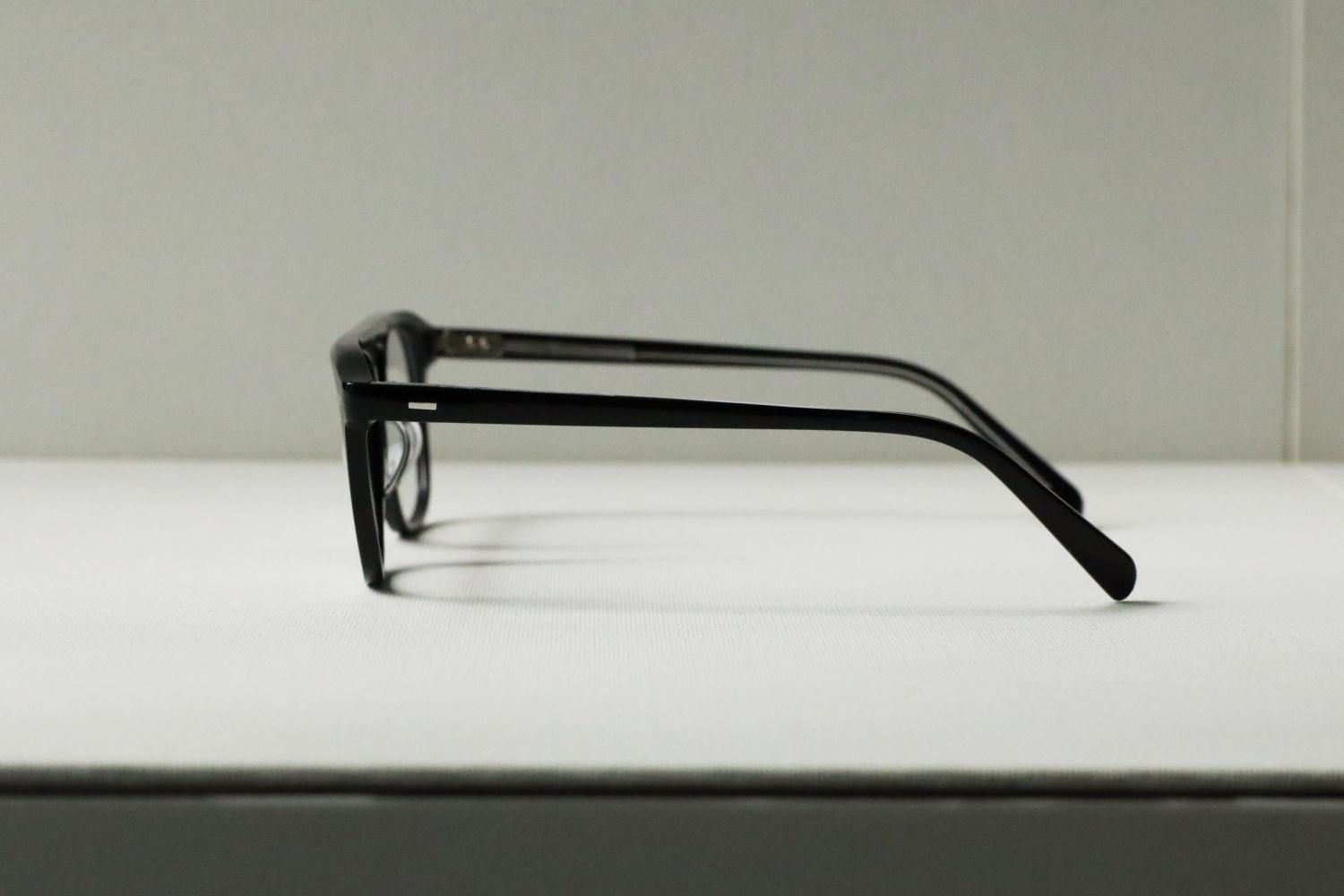 光を受けて浮かび上がるシャープなエッジ(陽)と、艶を抑えた深い黒が生み出す静寂の陰影(陰)。その相反する要素がフレームの中で調和し、クラシックでもモードでもない、唯一無二のバランスを築いています。