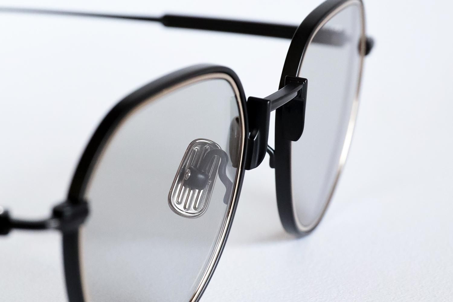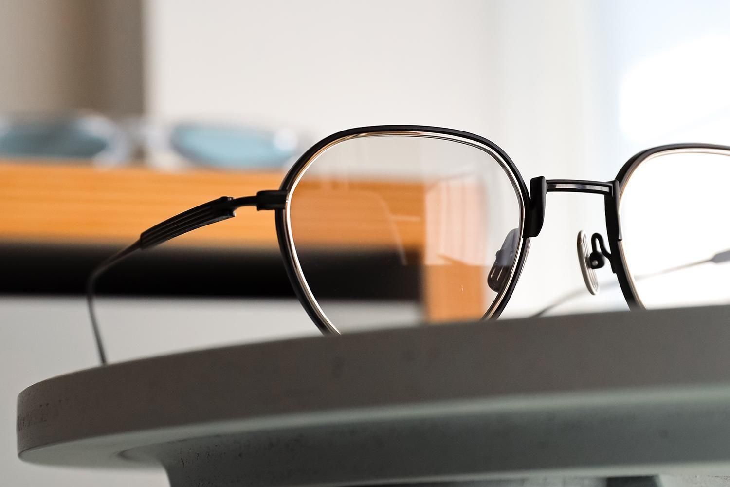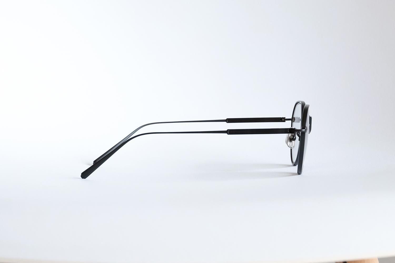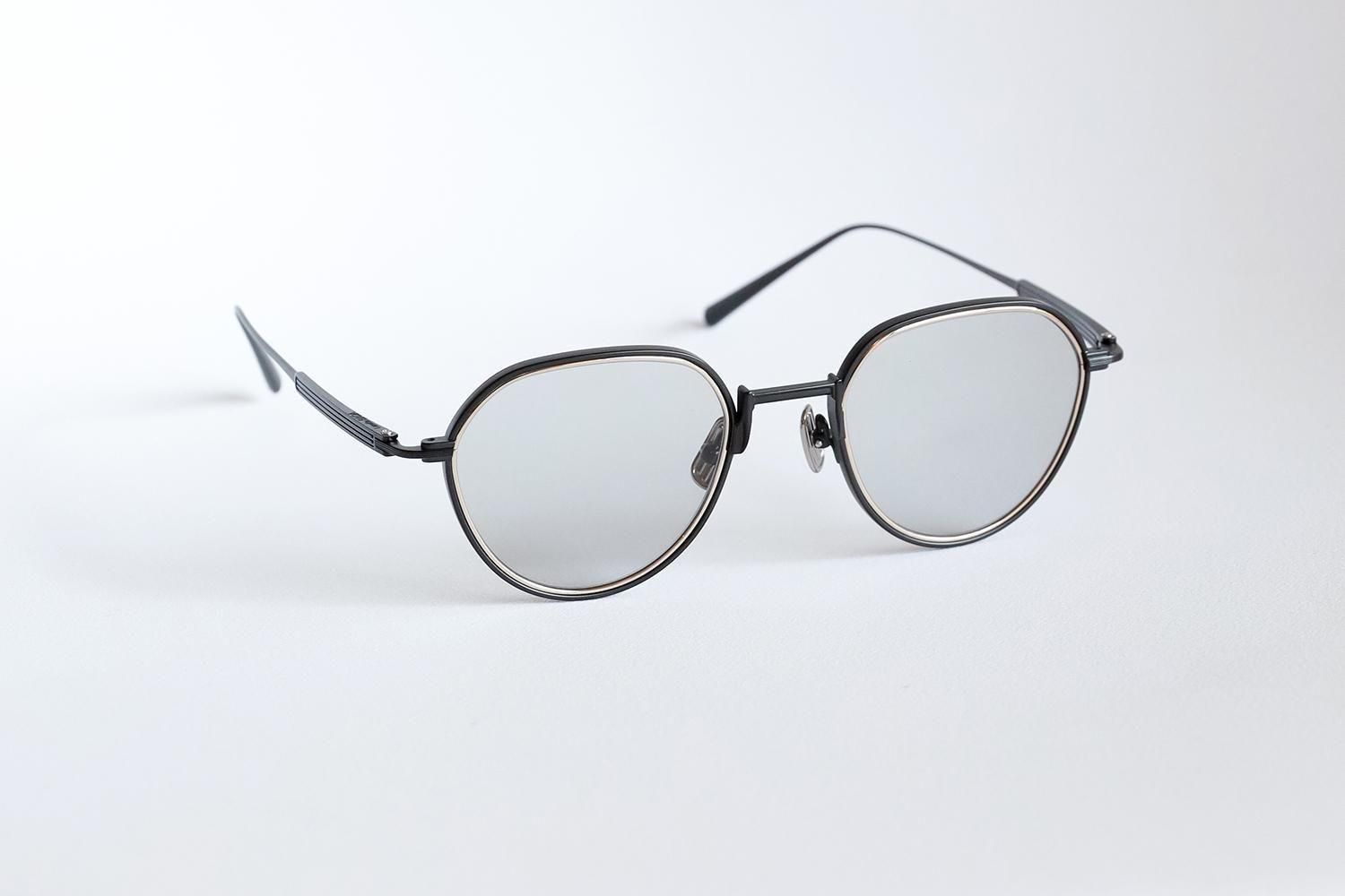 フロントとテンプルはオールチタン。かつてのウィンザーリムのような柔らかい輪郭を、金属パーツで再現。