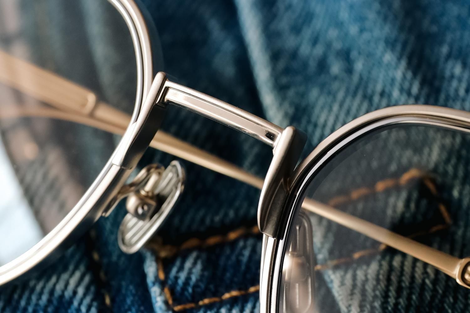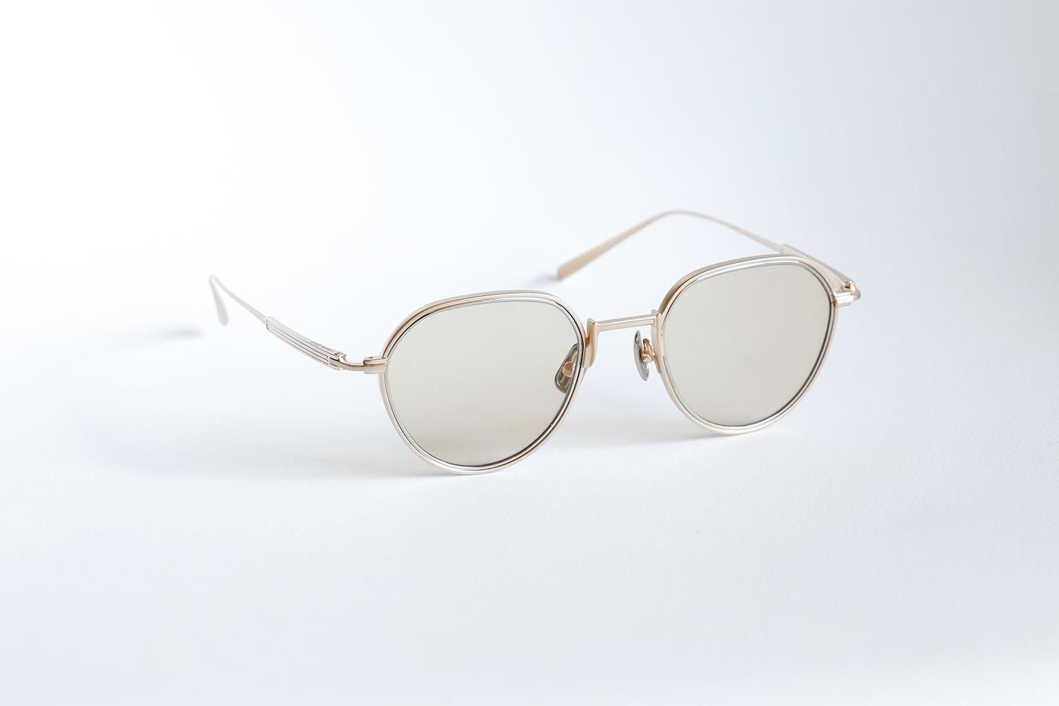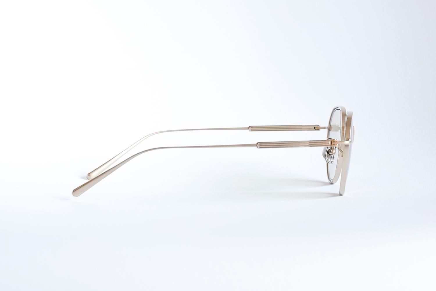 フロントとテンプルはオールチタン。かつてのウィンザーリムのような柔らかい輪郭を、金属パーツで再現。