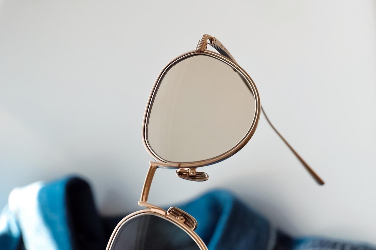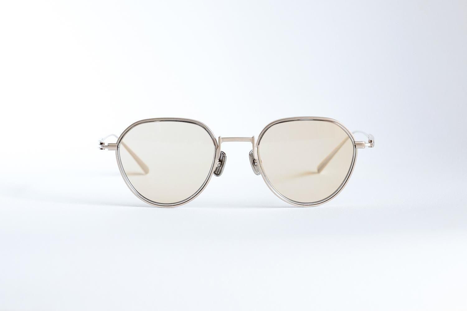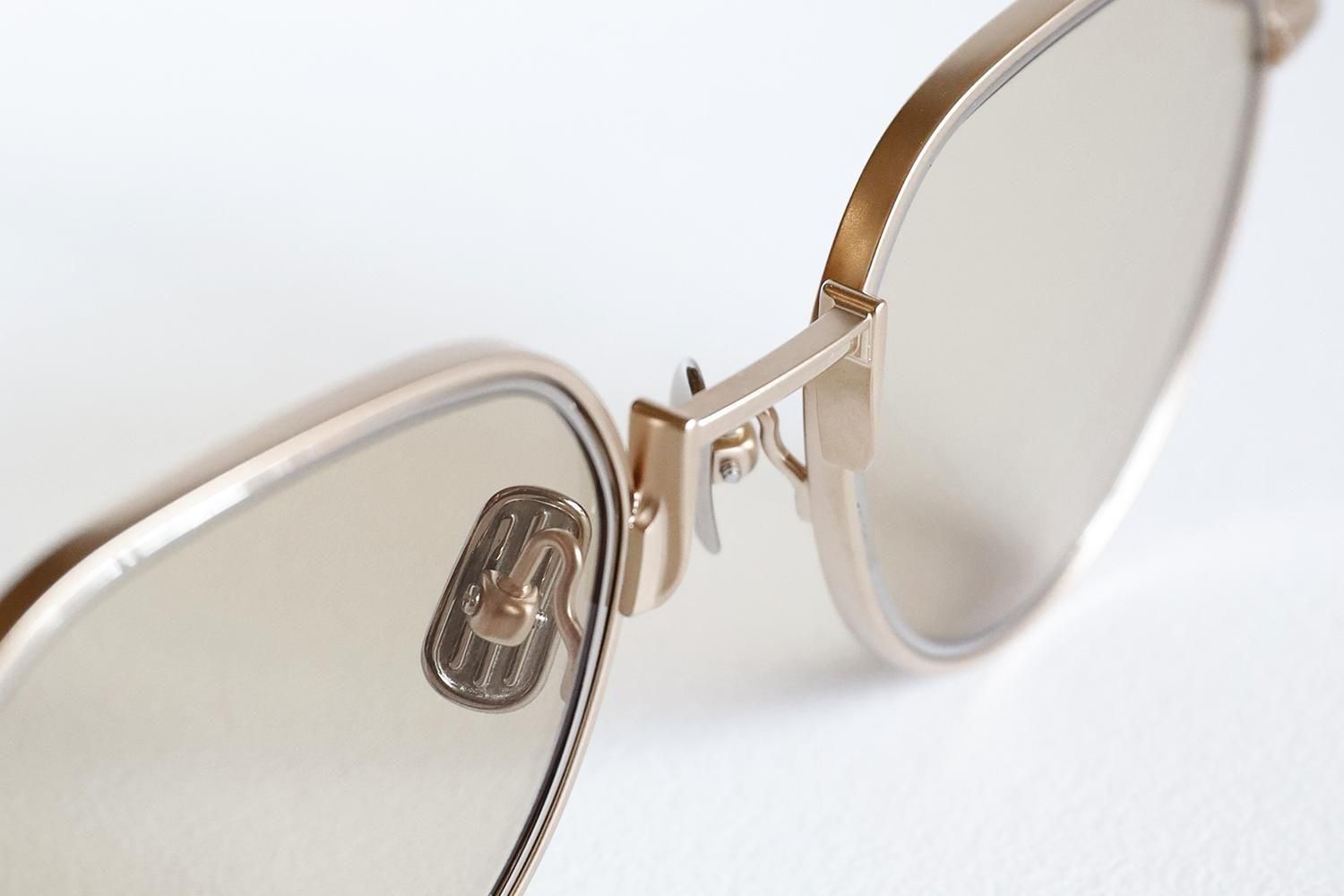 フロントとテンプルはオールチタン。かつてのウィンザーリムのような柔らかい輪郭を、金属パーツで再現。