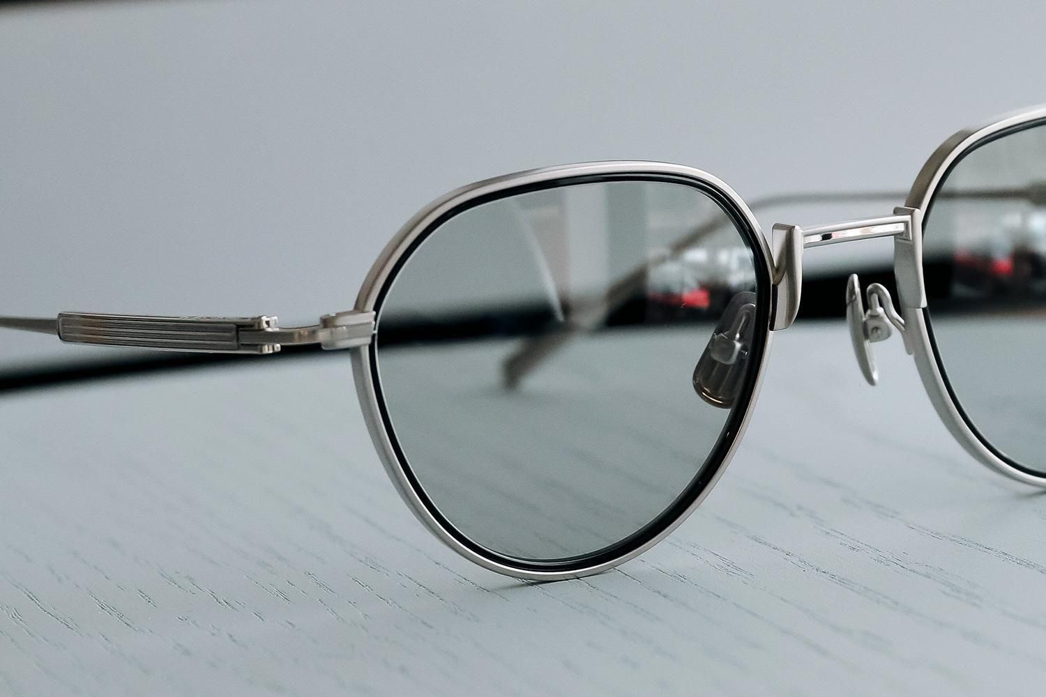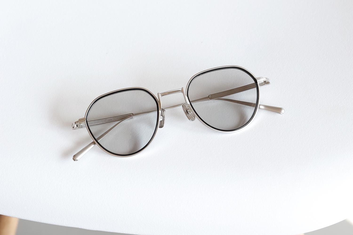 フロントとテンプルはオールチタン。かつてのウィンザーリムのような柔らかい輪郭を、金属パーツで再現。