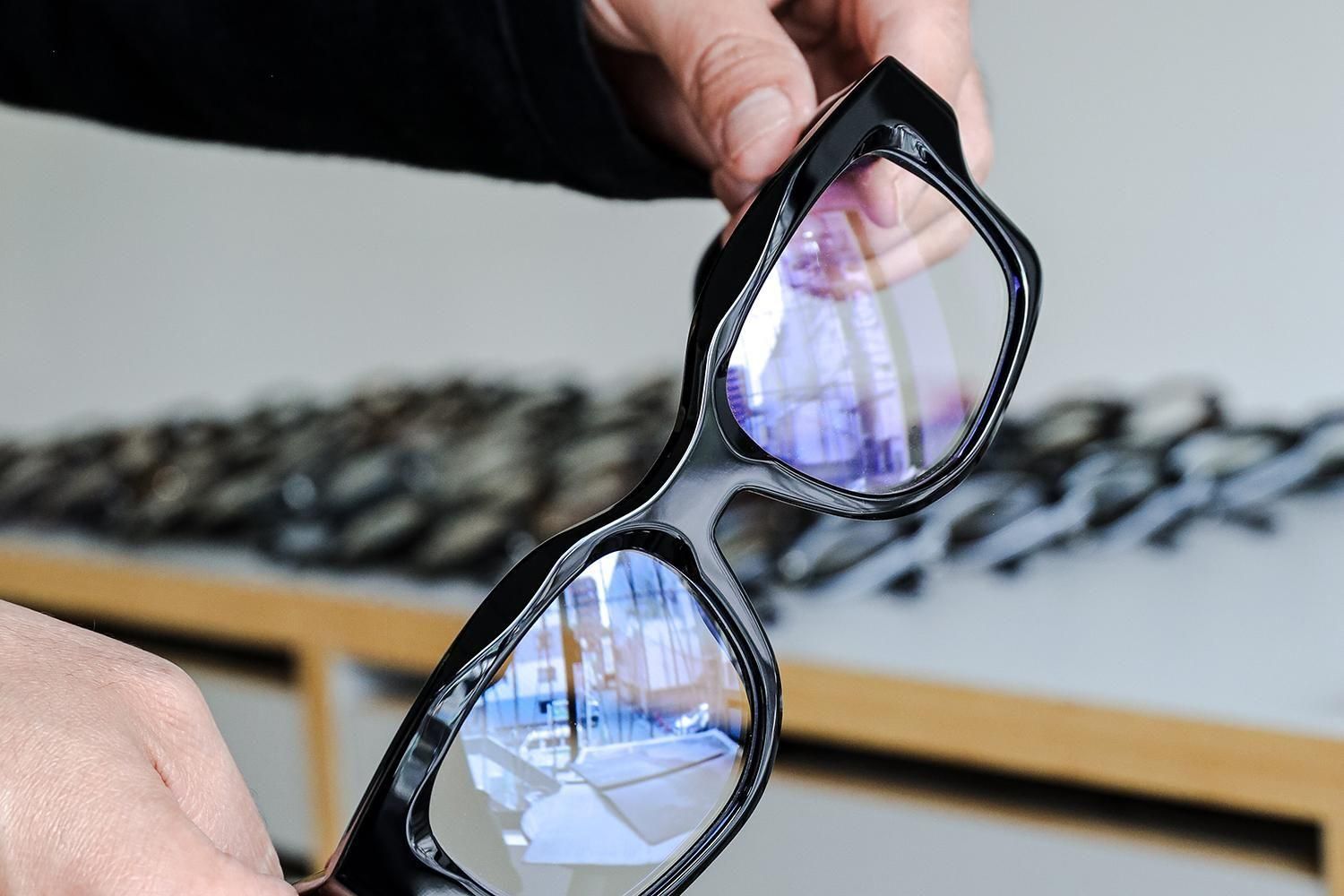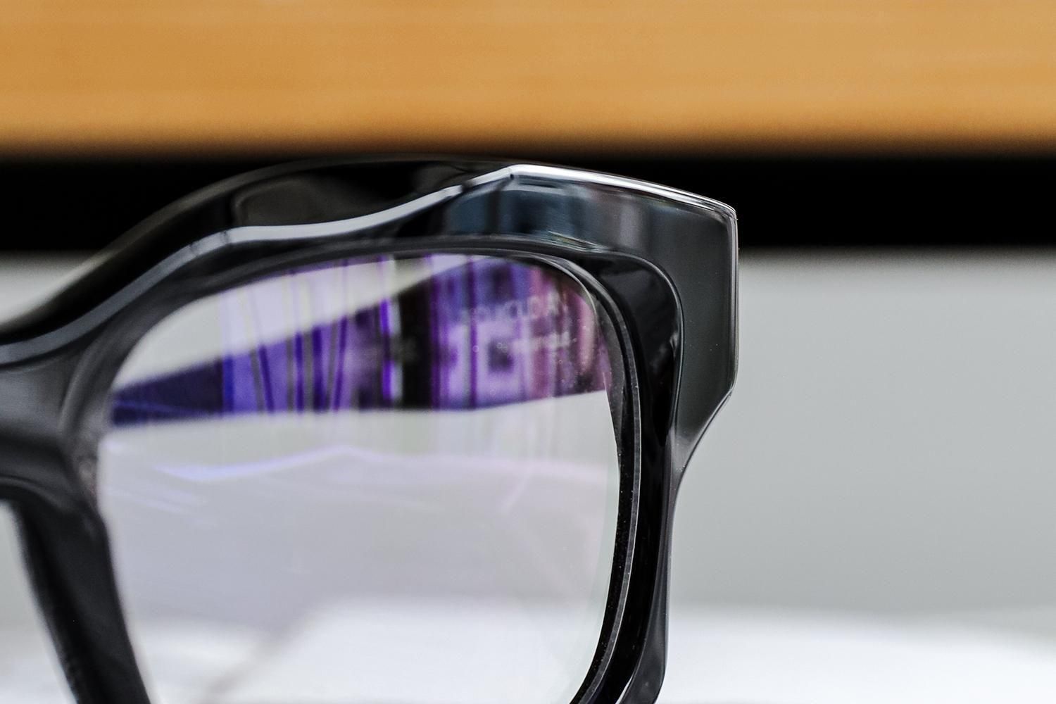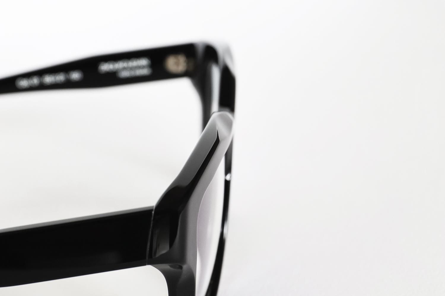 フロントのリムやレンズ周りには繊細なカッティングが施され、光の角度で立体感が変化。陰影の厚みが生まれる。フラットなフレームが多い中で、この奥行きのある造形はちょっと反則級。