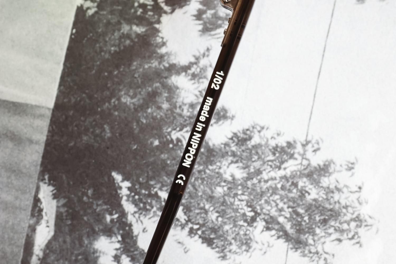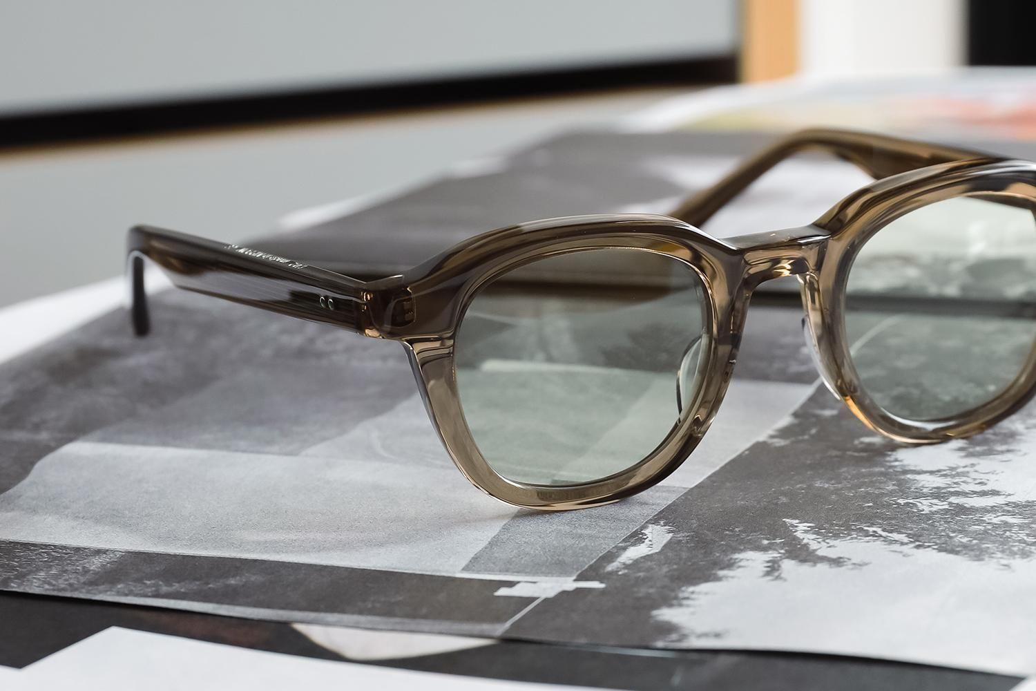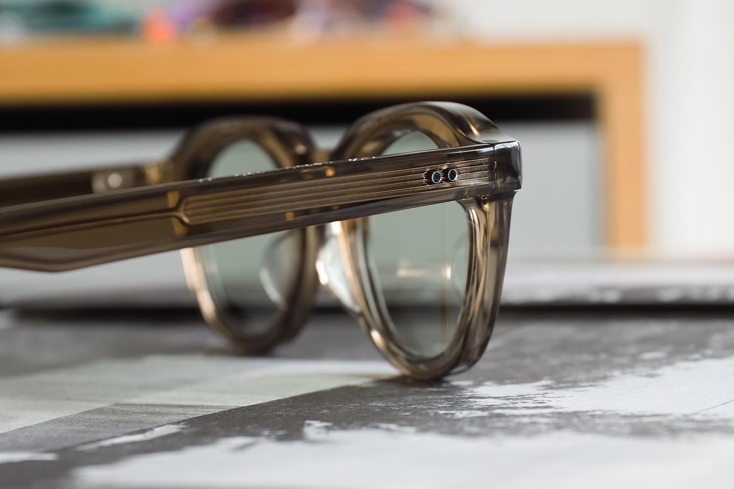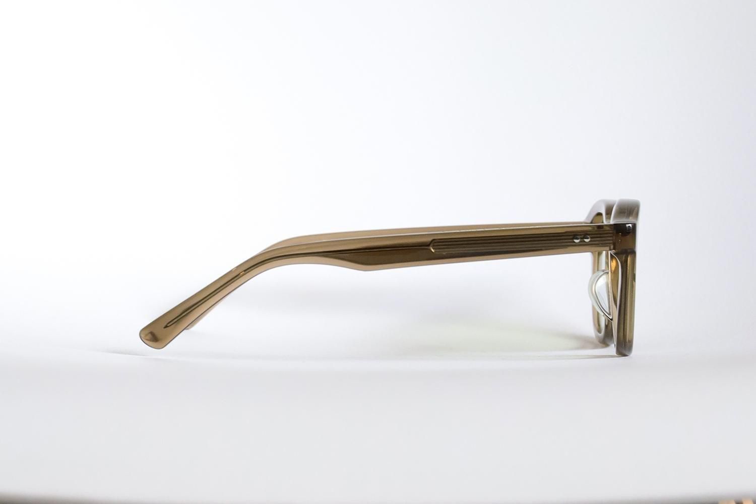 特注厚の8mmアセテートを使用し、“テレビジョンカット”と呼ばれる立体的な面構成で仕上げられています。重厚感がありながら、トップとボトムを繊細に削り落とすことで、ほどよく軽やかな印象に。