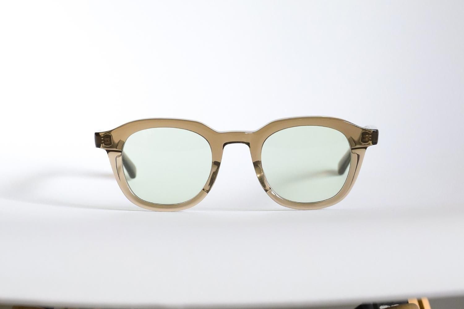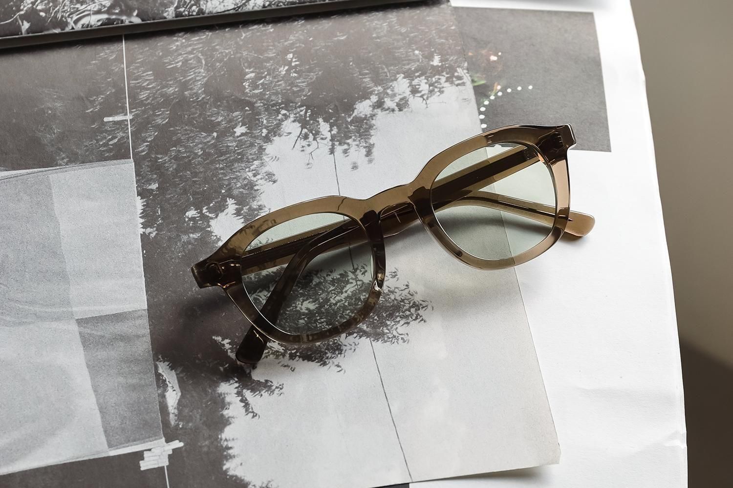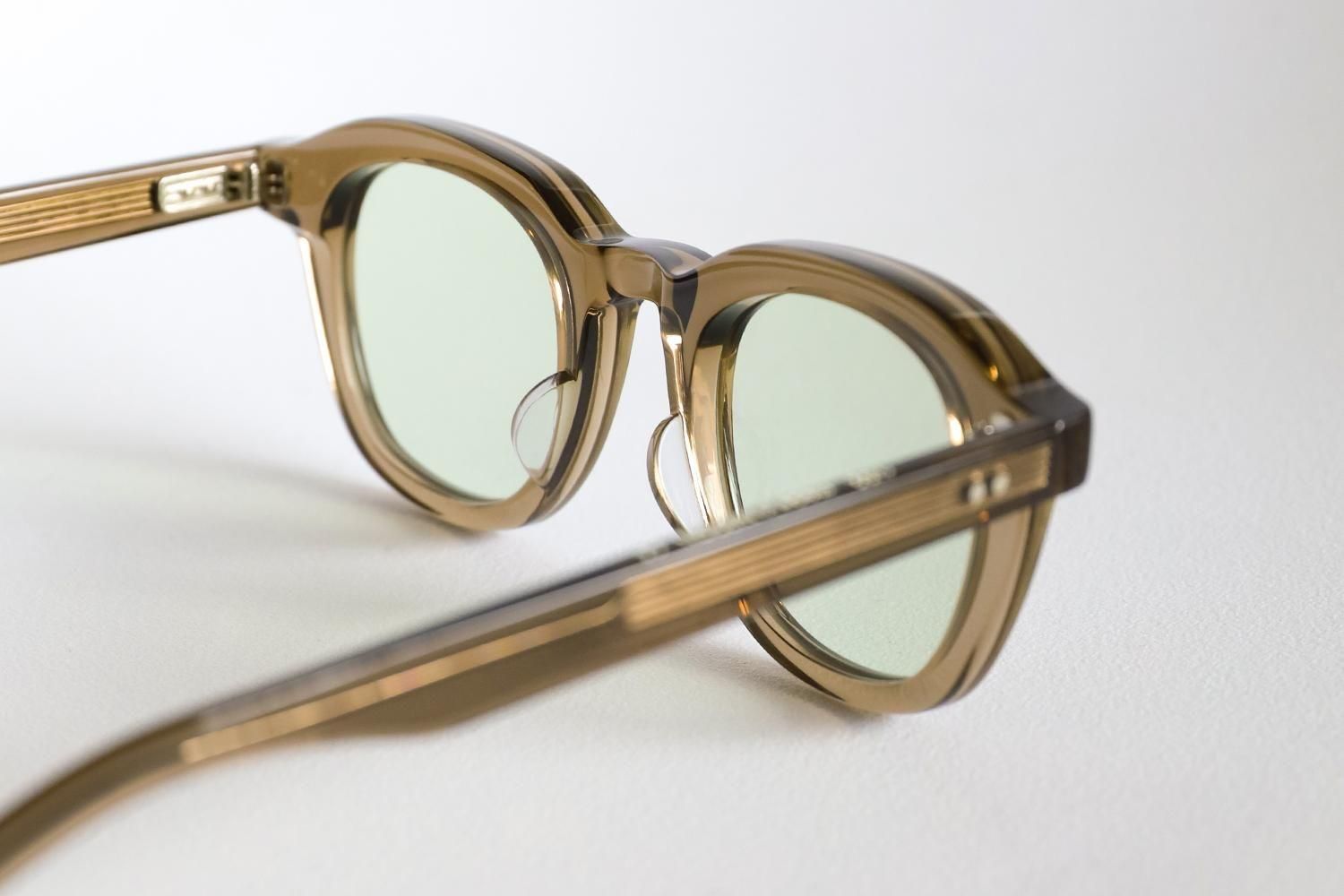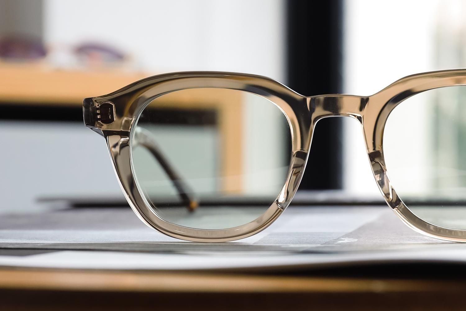 特注厚の8mmアセテートを使用し、“テレビジョンカット”と呼ばれる立体的な面構成で仕上げられています。重厚感がありながら、トップとボトムを繊細に削り落とすことで、ほどよく軽やかな印象に。