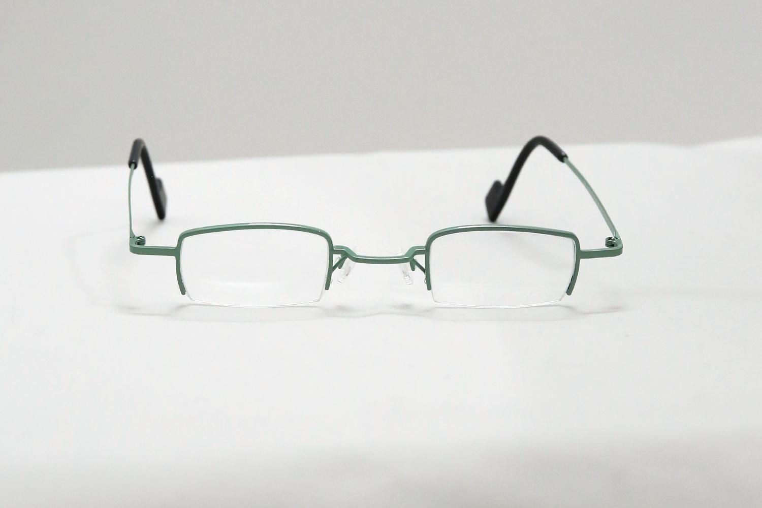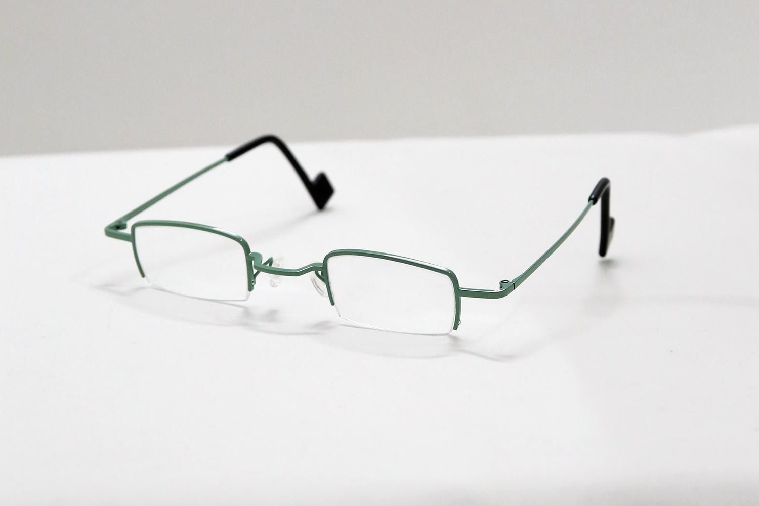 レンズの下半分にフレームがないナイロール(ハーフリム)構造を採用した、すっきりとしたスクエア型。小ぶりなレンズシェイプは顔なじみが良く、特に強度近視の方にもレンズの厚みを気にせず、薄く軽やかに仕上げられるという実用的なメリットも兼ね備えています。