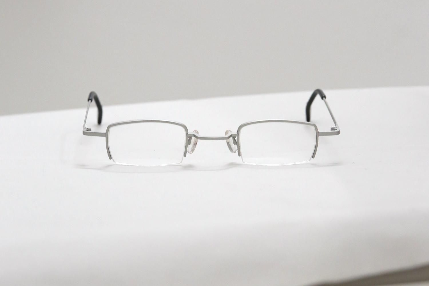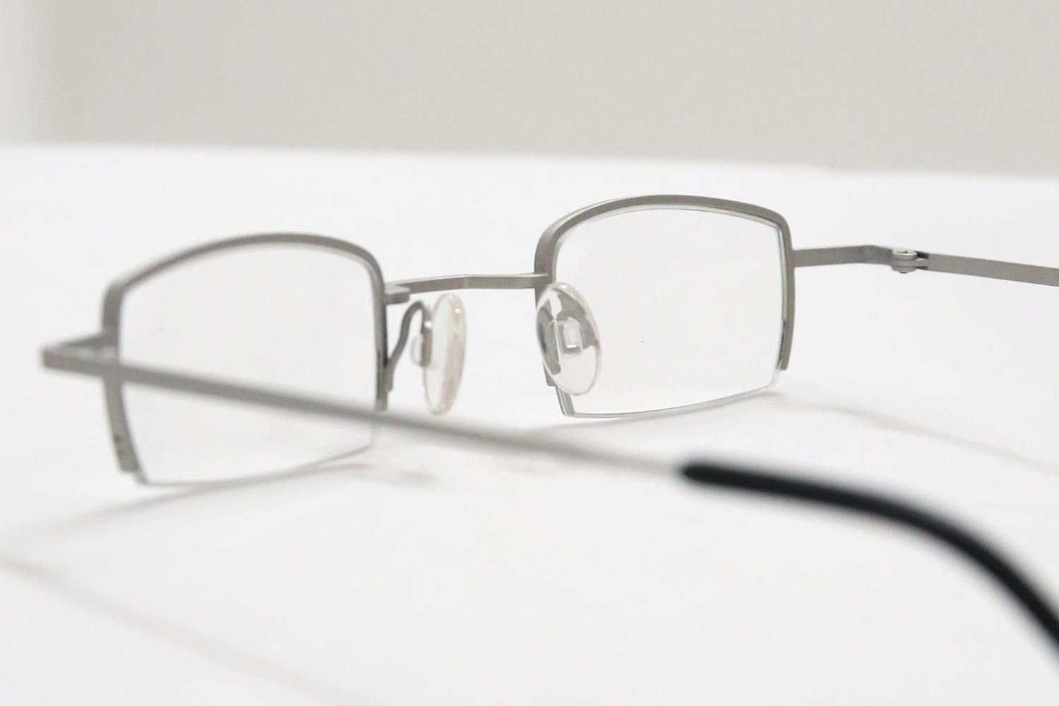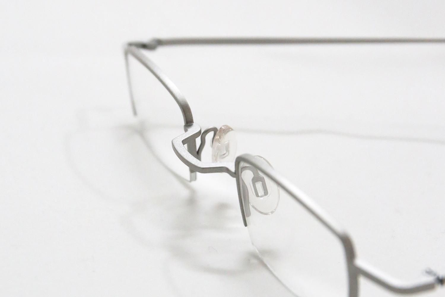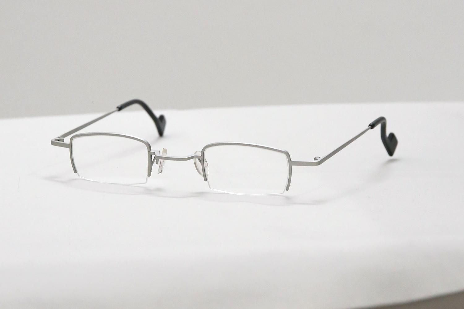 レンズの下半分にフレームがないナイロール(ハーフリム)構造を採用した、すっきりとしたスクエア型。小ぶりなレンズシェイプは顔なじみが良く、特に強度近視の方にもレンズの厚みを気にせず、薄く軽やかに仕上げられるという実用的なメリットも兼ね備えています。