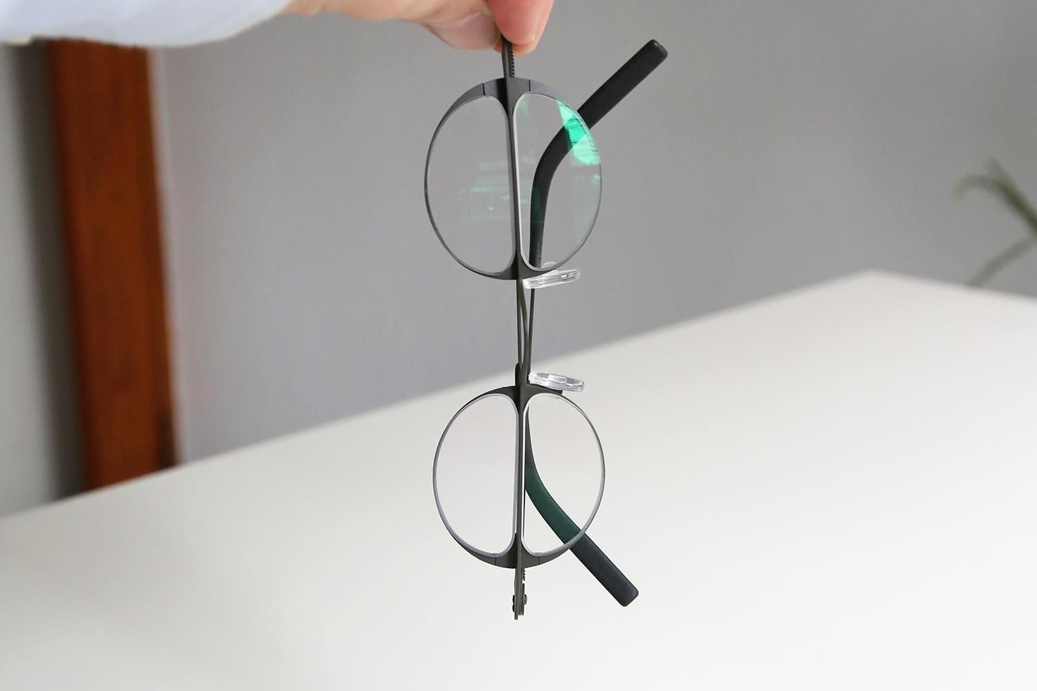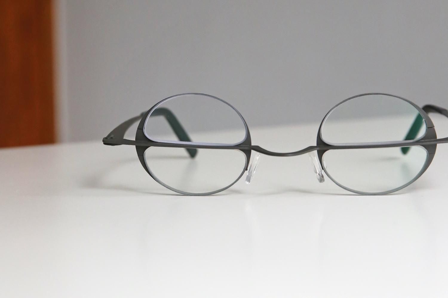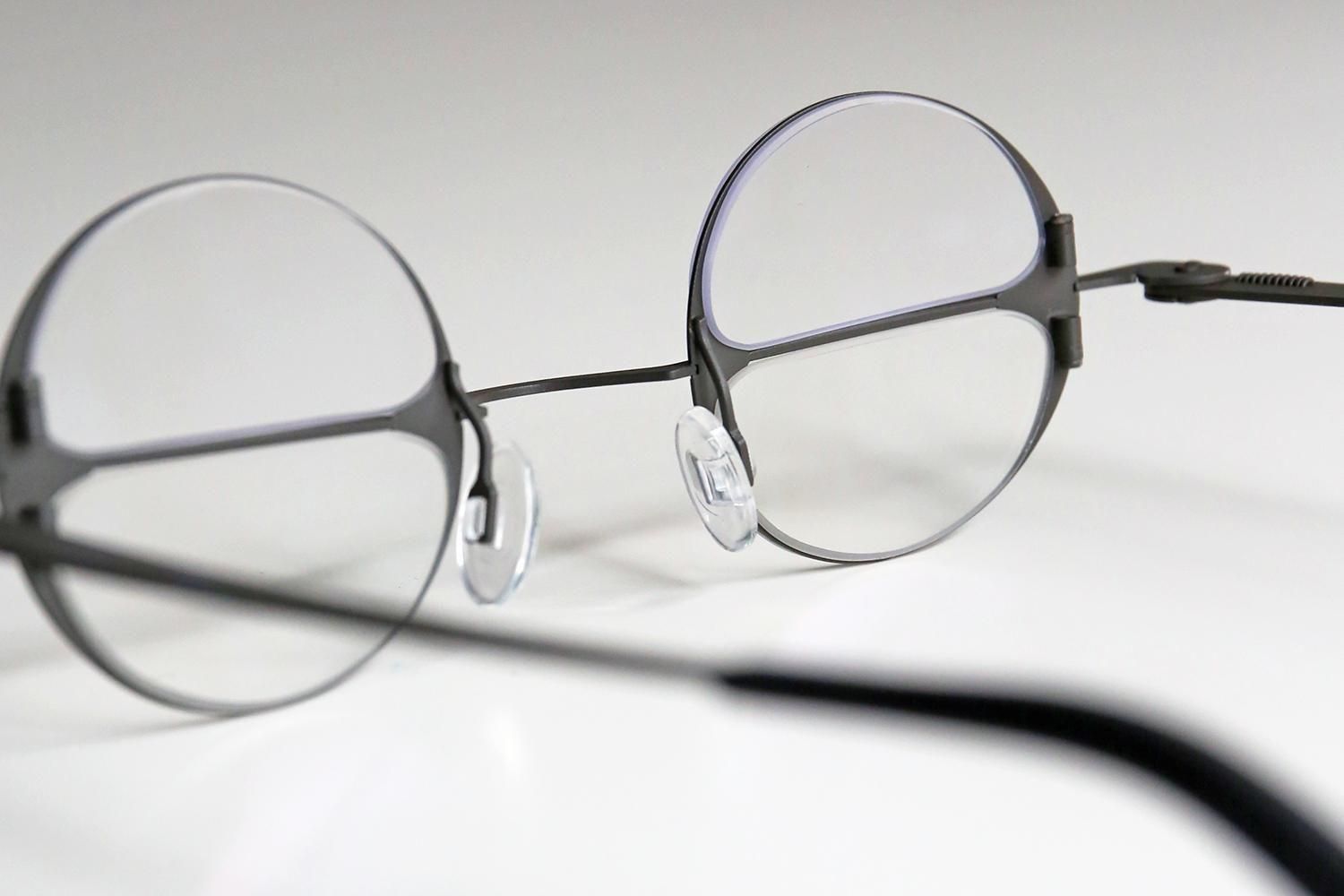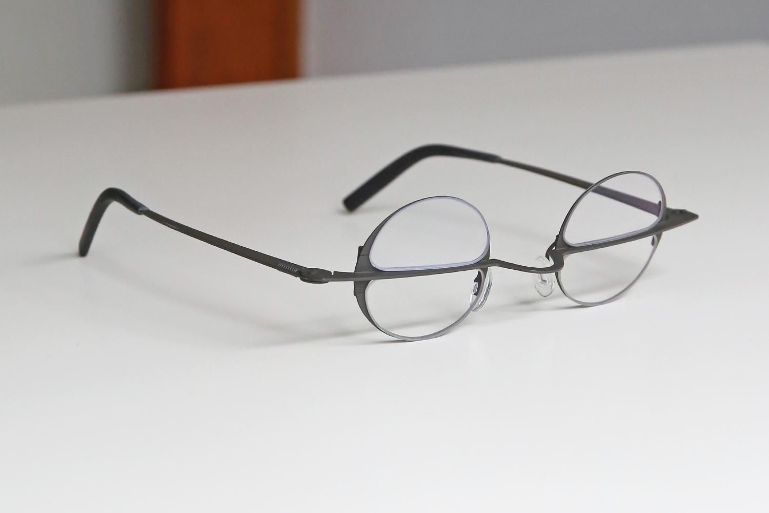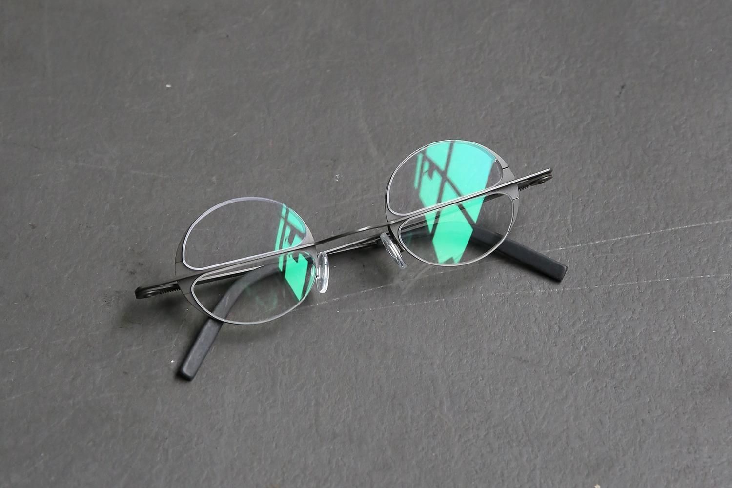 さらには機能性へのアプローチもしっかりしており、この二段構造の用途は、遠近両用を使用する際のアプローチとして活用されてきました。上部に遠くを見る度数、下部に近くを見る度数を設定することで、遊び心と実用性を両立させた、テオならではの遠近両用メガネとしてお楽しみいただけます!