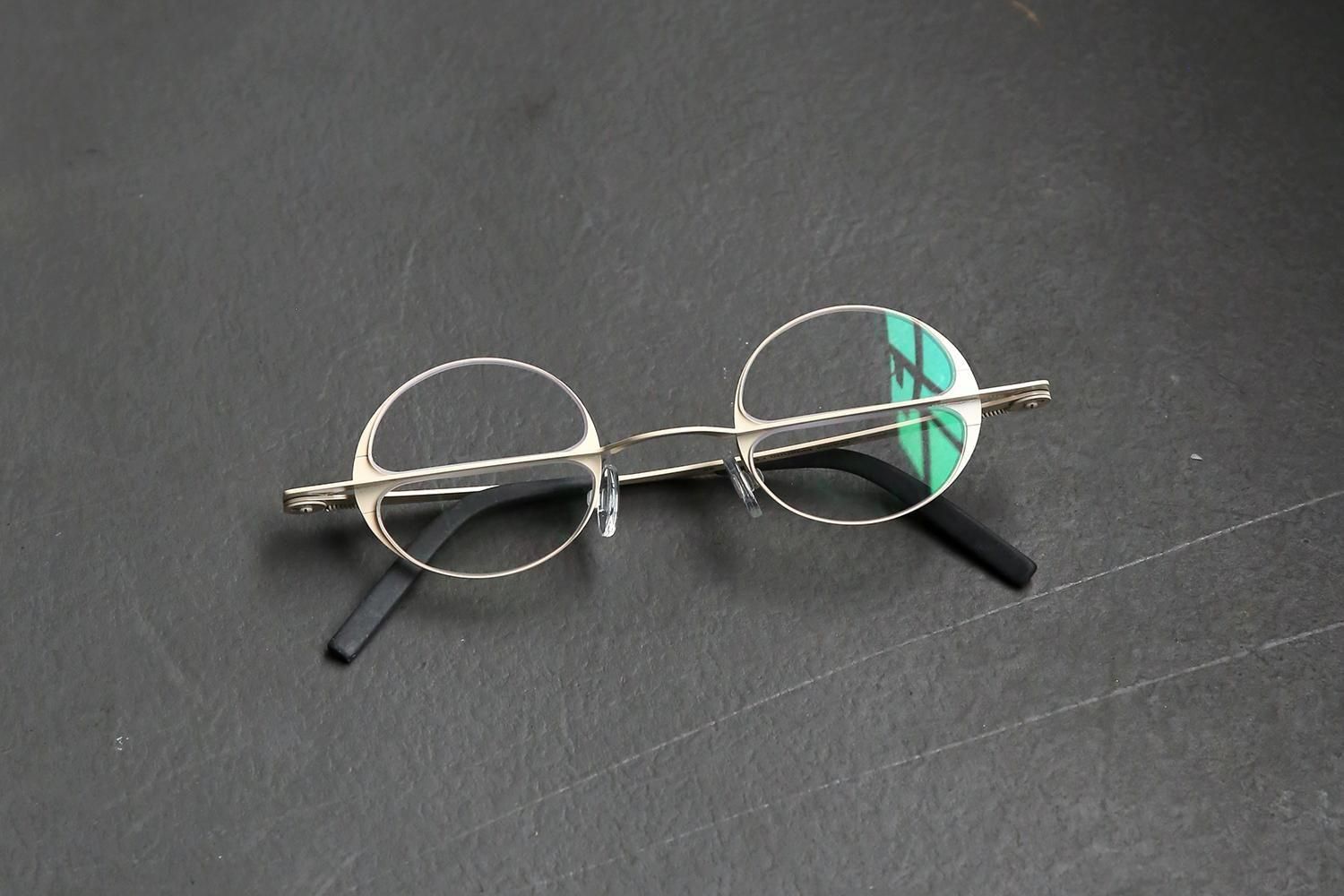 さらには機能性へのアプローチもしっかりしており、この二段構造の用途は、遠近両用を使用する際のアプローチとして活用されてきました。上部に遠くを見る度数、下部に近くを見る度数を設定することで、遊び心と実用性を両立させた、テオならではの遠近両用メガネとしてお楽しみいただけます!