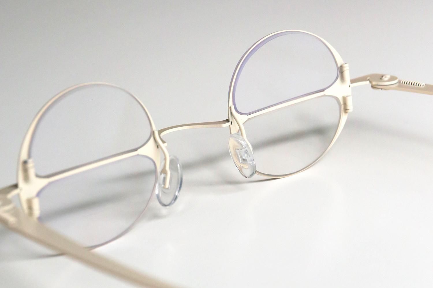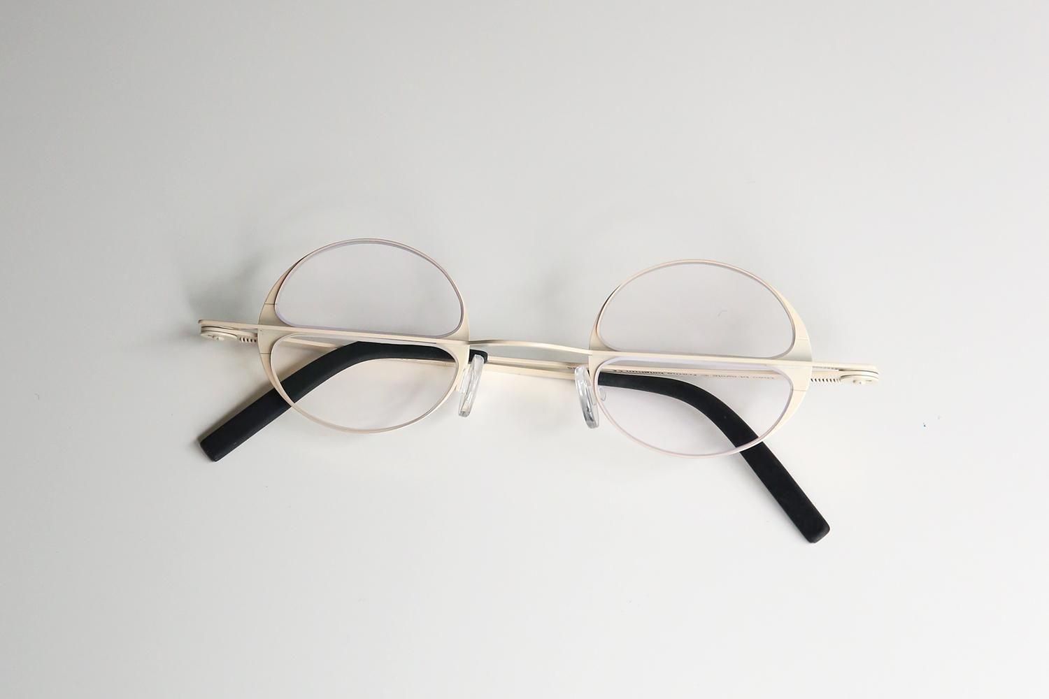 このモデルの最大の特徴は、美しいラウンド(丸型)シェイプを、水平なブリッジが横切ることで、レンズが上下二段に分かれている点です。