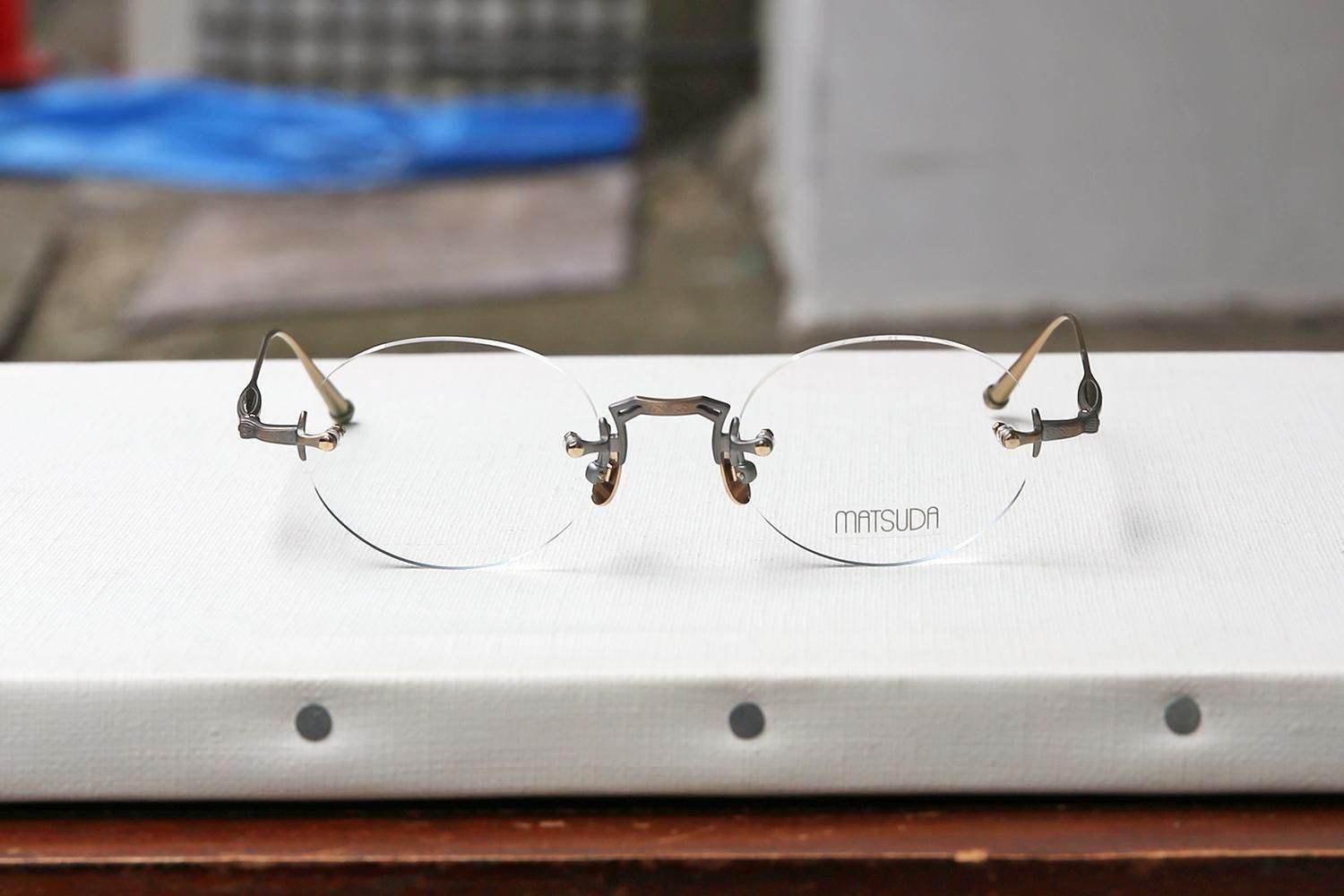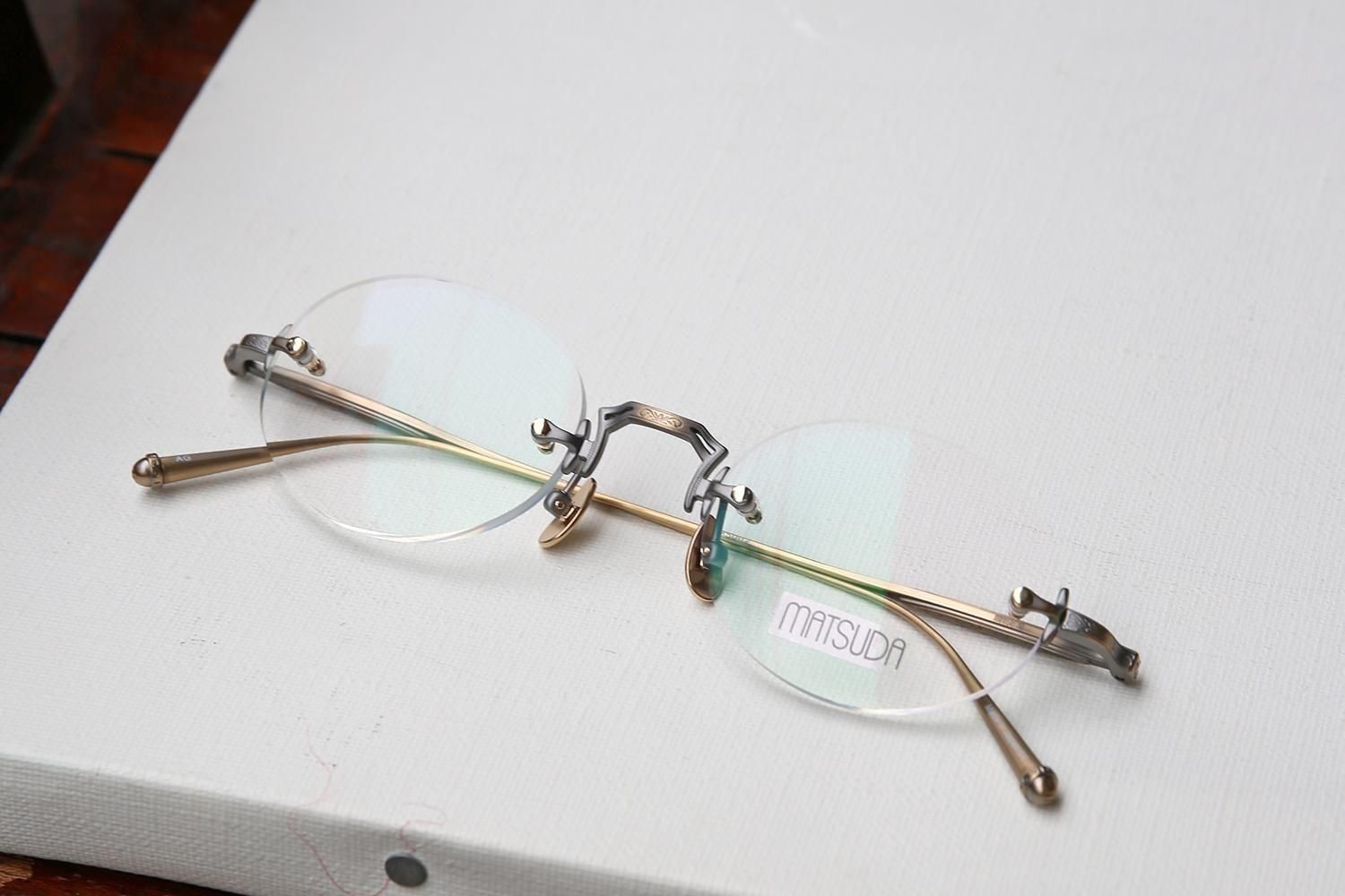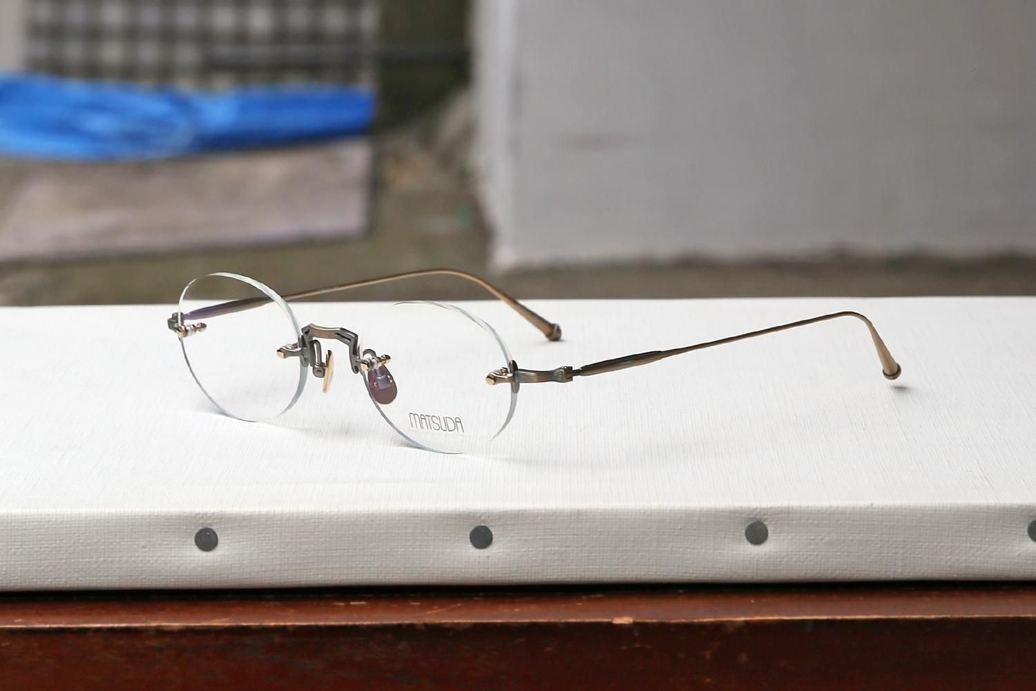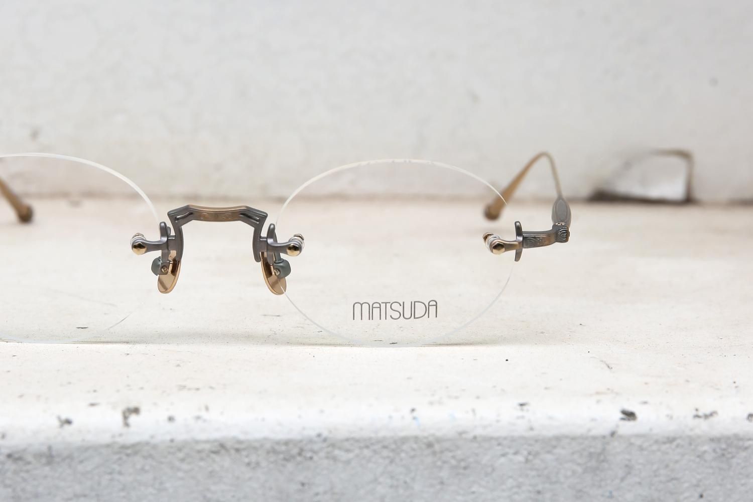 MATSUDAといえば、息をのむような美しい彫金のディティールが真髄ですが、レンズ周りのフチがない分、ブリッジやヨロイ、テンプルの彫金や造形美が目を惹きます。