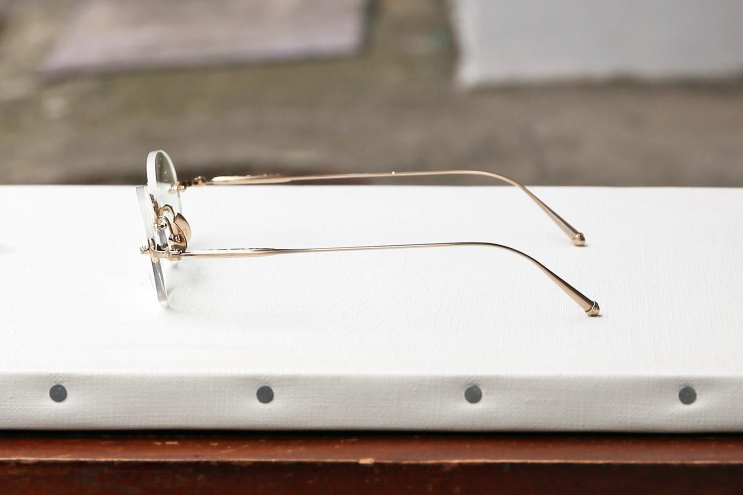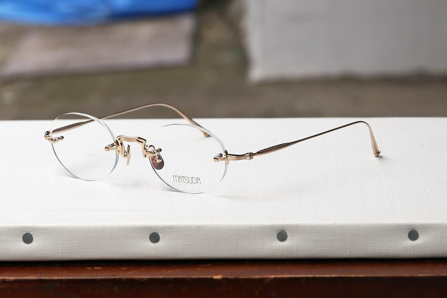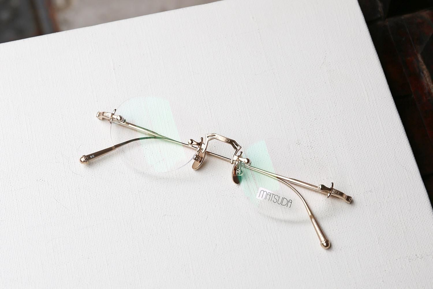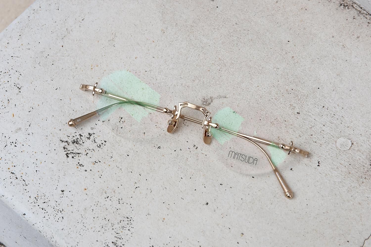 MATSUDAといえば、息をのむような美しい彫金のディティールが真髄ですが、レンズ周りのフチがない分、ブリッジやヨロイ、テンプルの彫金や造形美が目を惹きます。