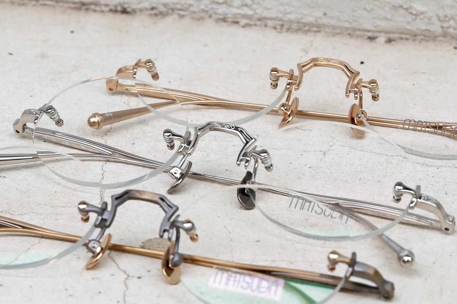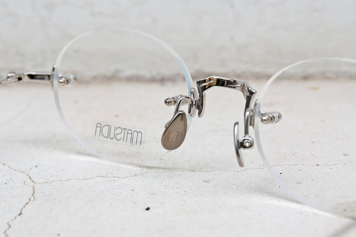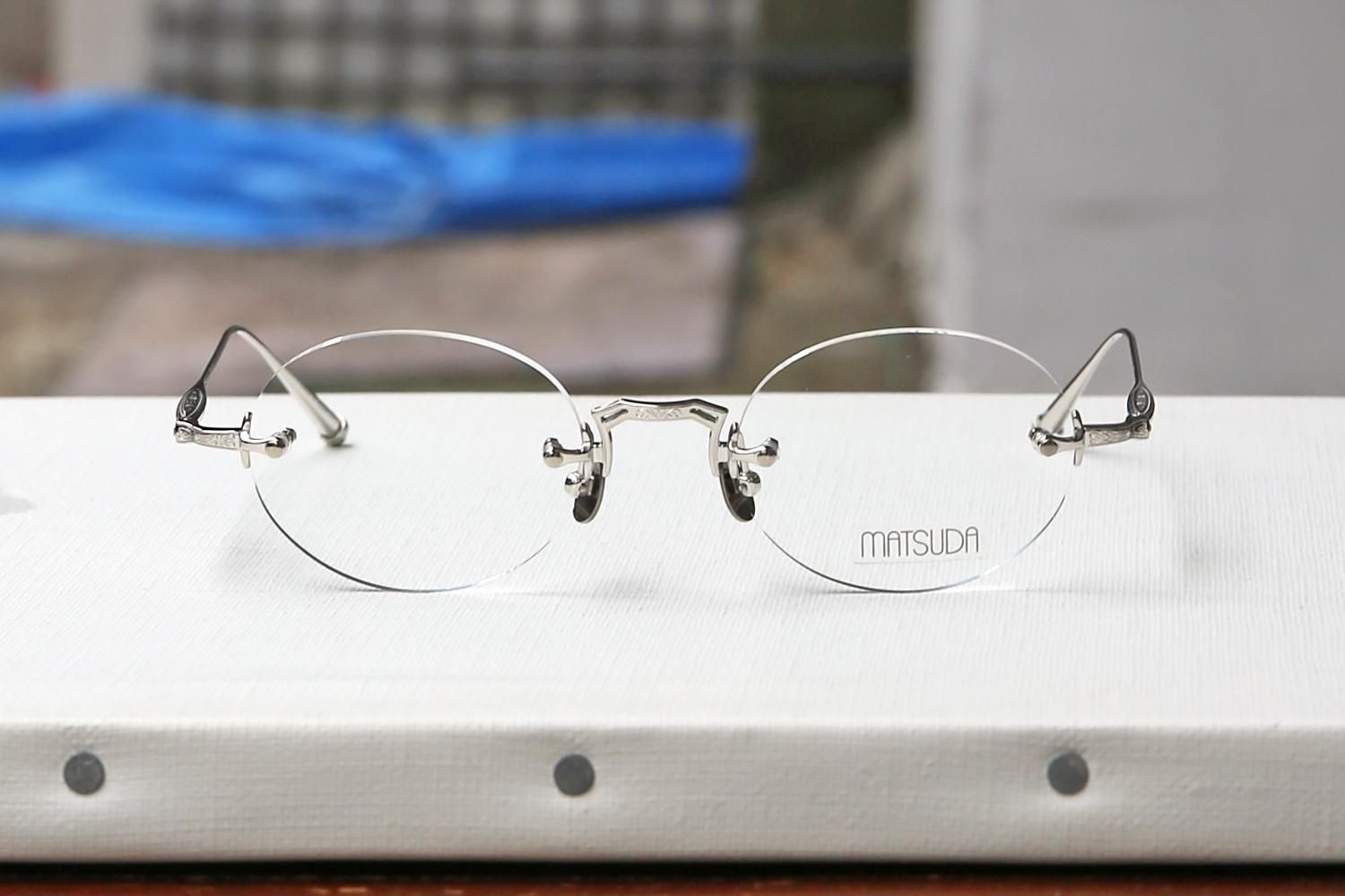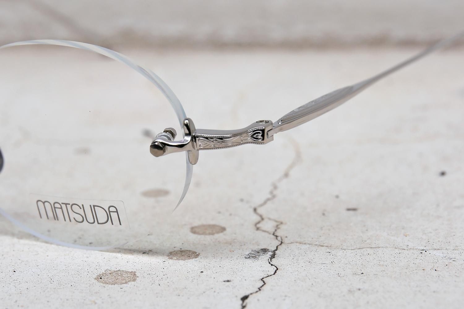 MATSUDAといえば、息をのむような美しい彫金のディティールが真髄ですが、レンズ周りのフチがない分、ブリッジやヨロイ、テンプルの彫金や造形美が目を惹きます。