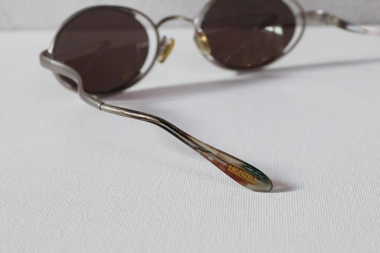 細部にわたるラインの処理や、立体的なレンズ周囲の縁取りなど、ラガーフェルド本人の美学を感じる仕上げが随所に見られます。