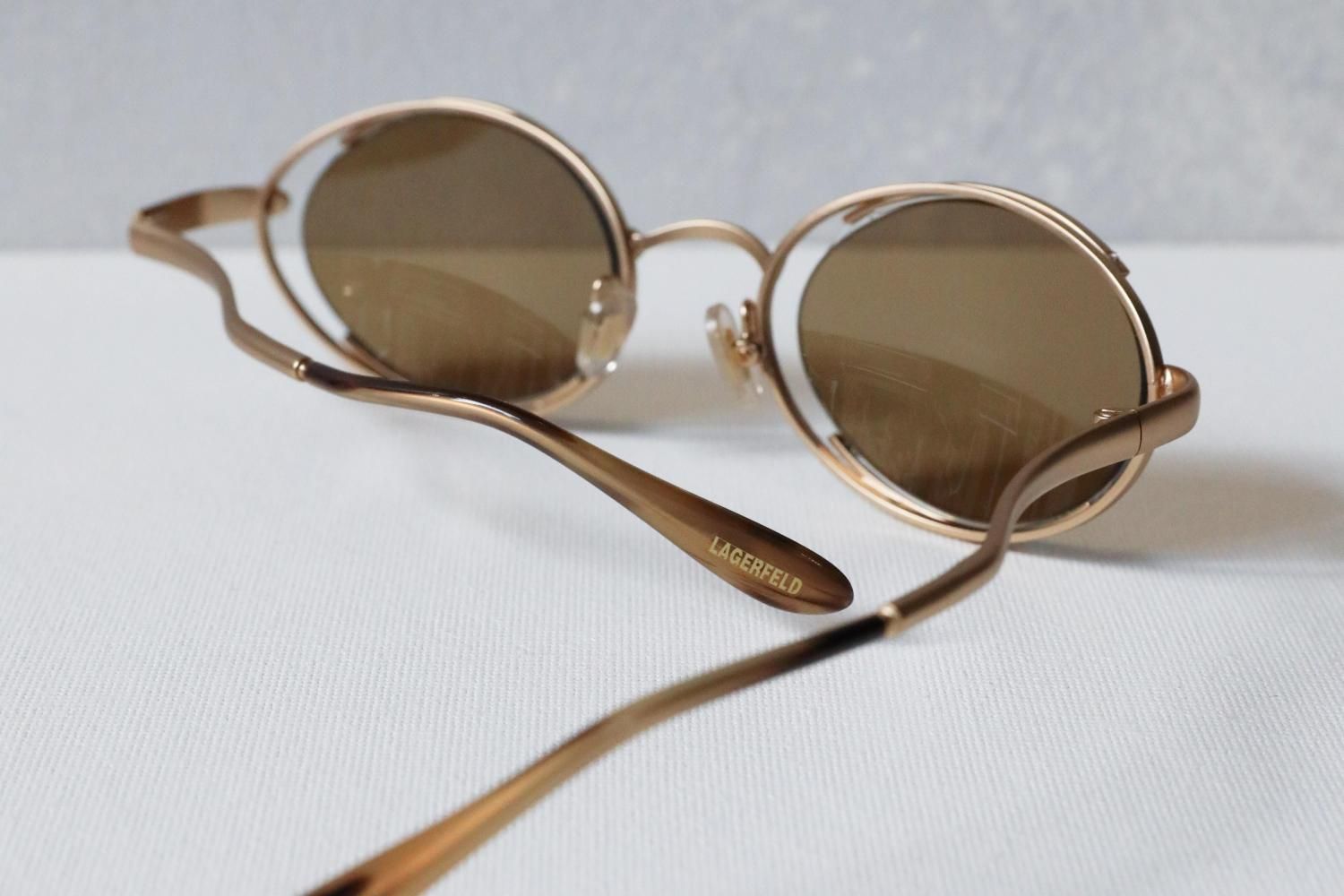 細部にわたるラインの処理や、立体的なレンズ周囲の縁取りなど、ラガーフェルド本人の美学を感じる仕上げが随所に見られます。