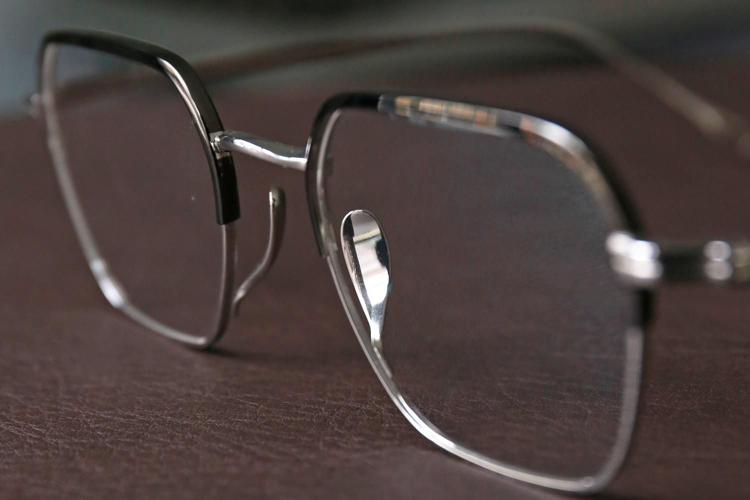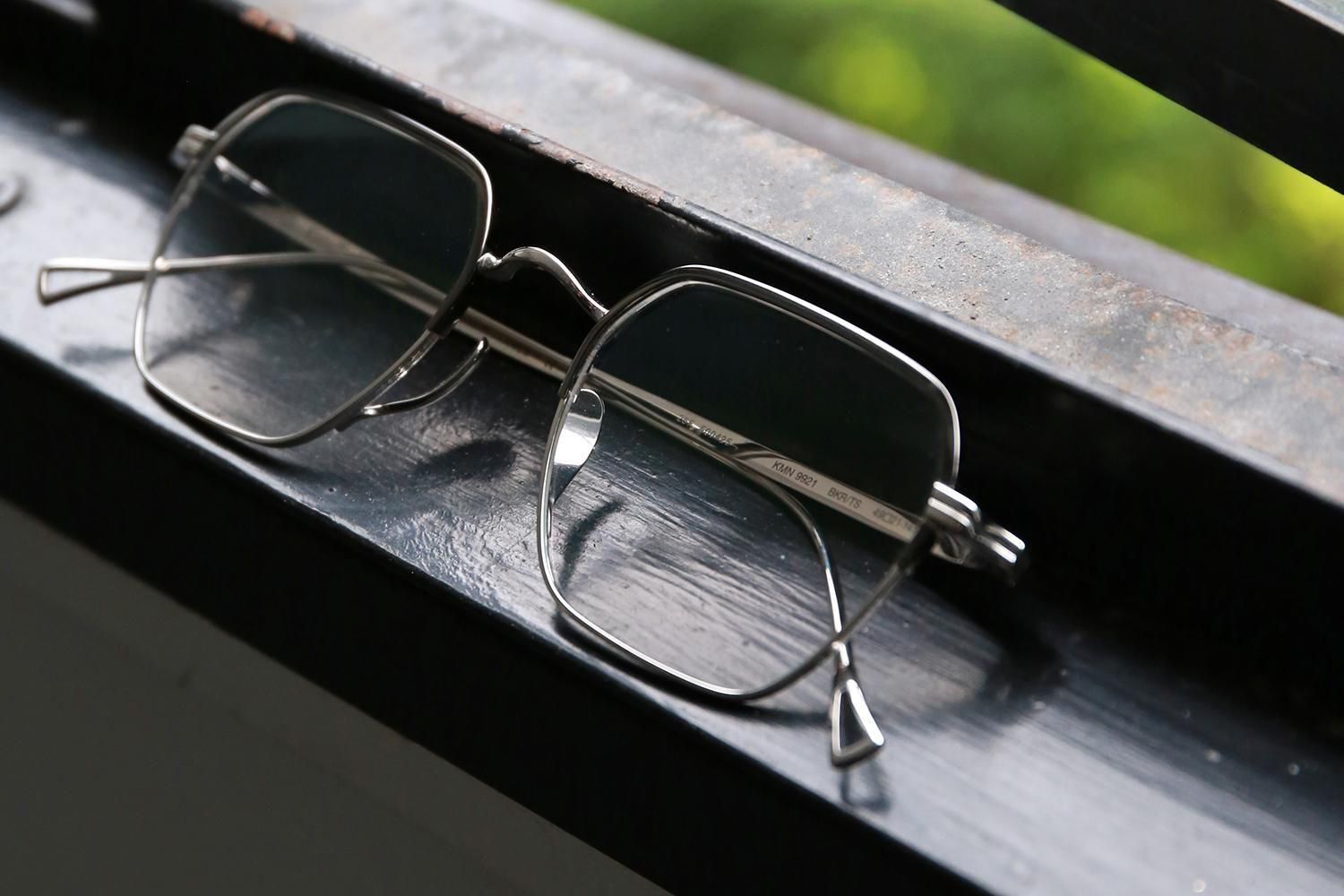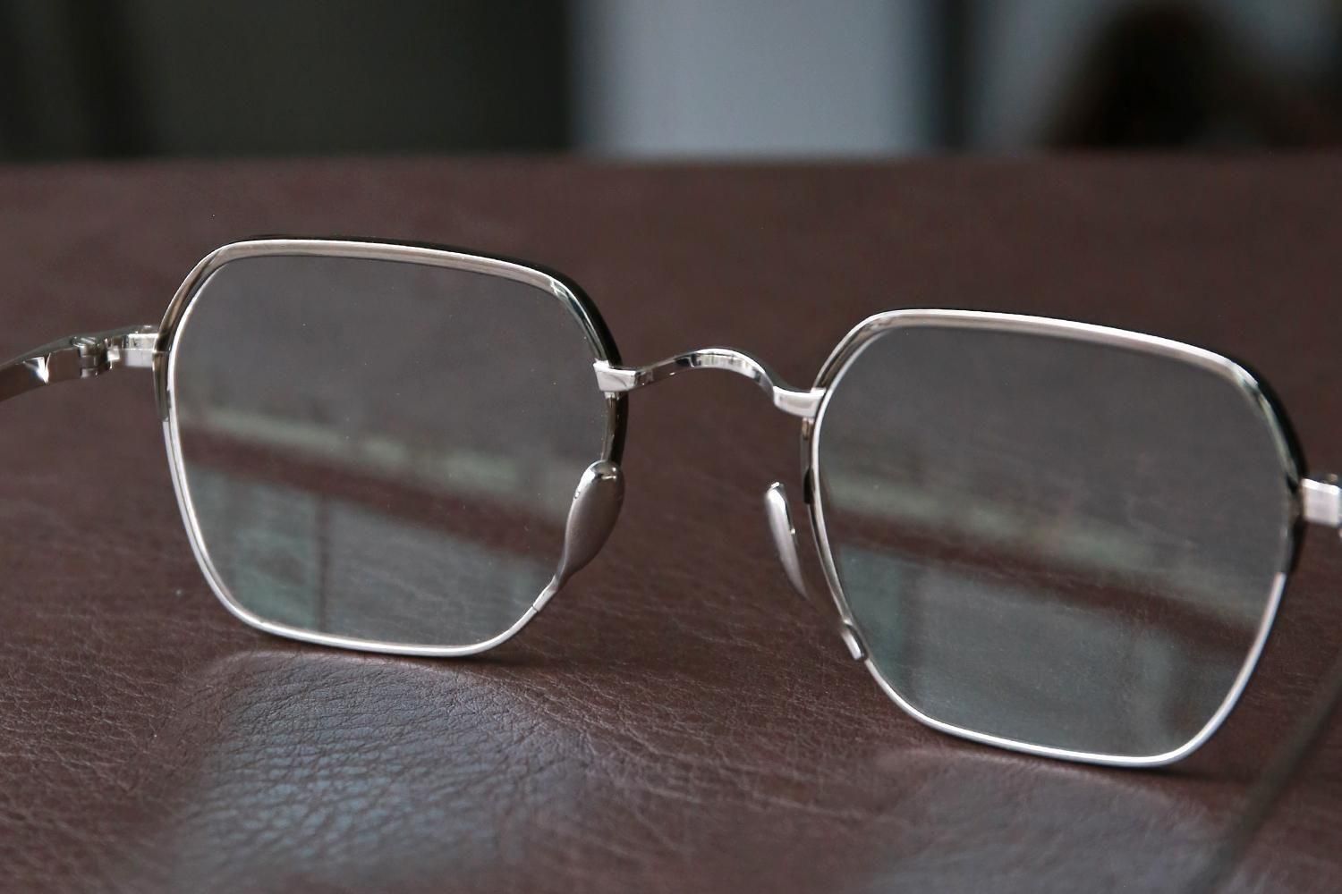 柔らかなクラウンパントの「9920」とは対照的に、直線と角を意識したヘキサゴン(六角形)シェイプを採用したチタンフレームです。