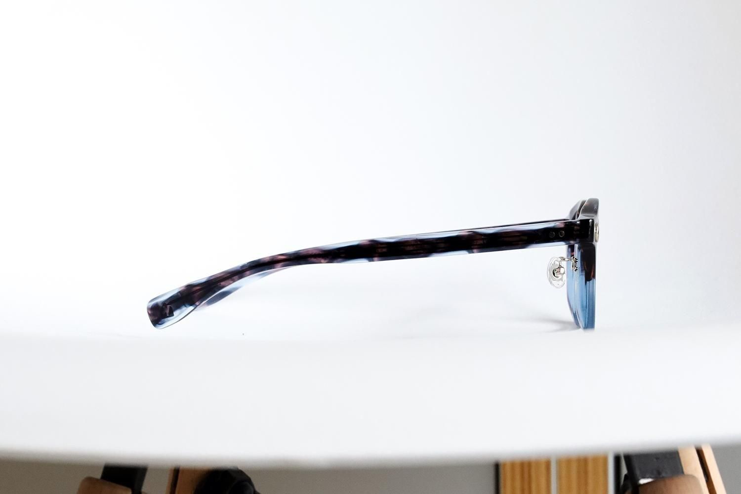 縦幅にほんの少し余裕を持たせつつ、レンズの左右をキュッと締めているので、丸メガネが苦手な方でもすんなり馴染む絶妙なバランスです。