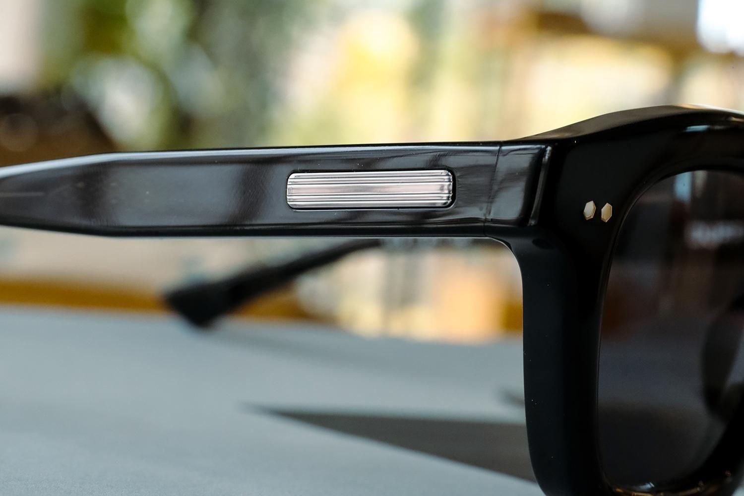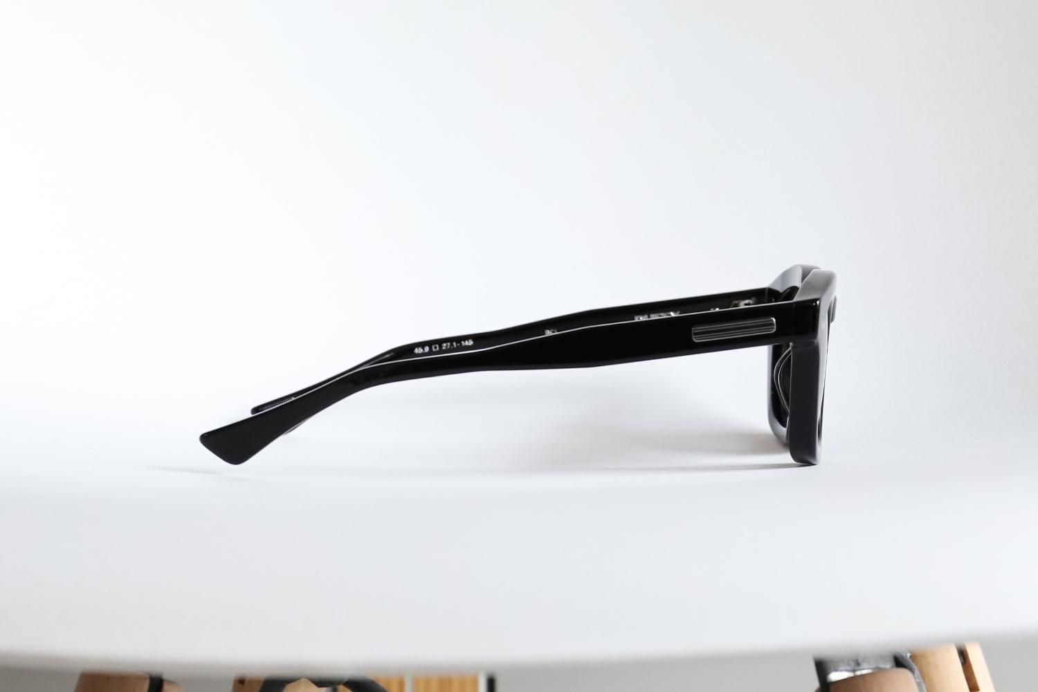 鈍さのない深い艶が、黒フレームでも"重さ"ではなく"品"として成立するのが魅力。